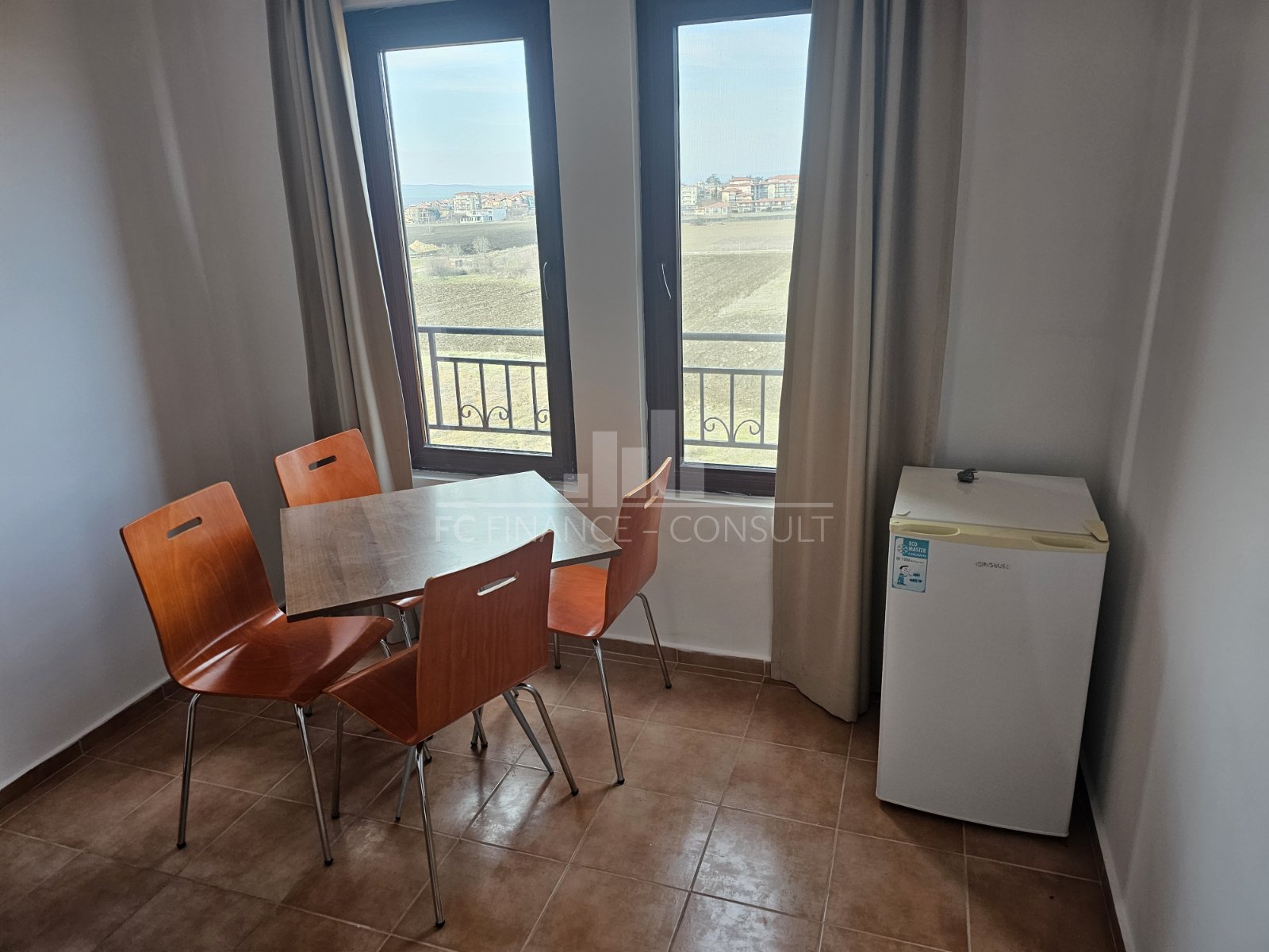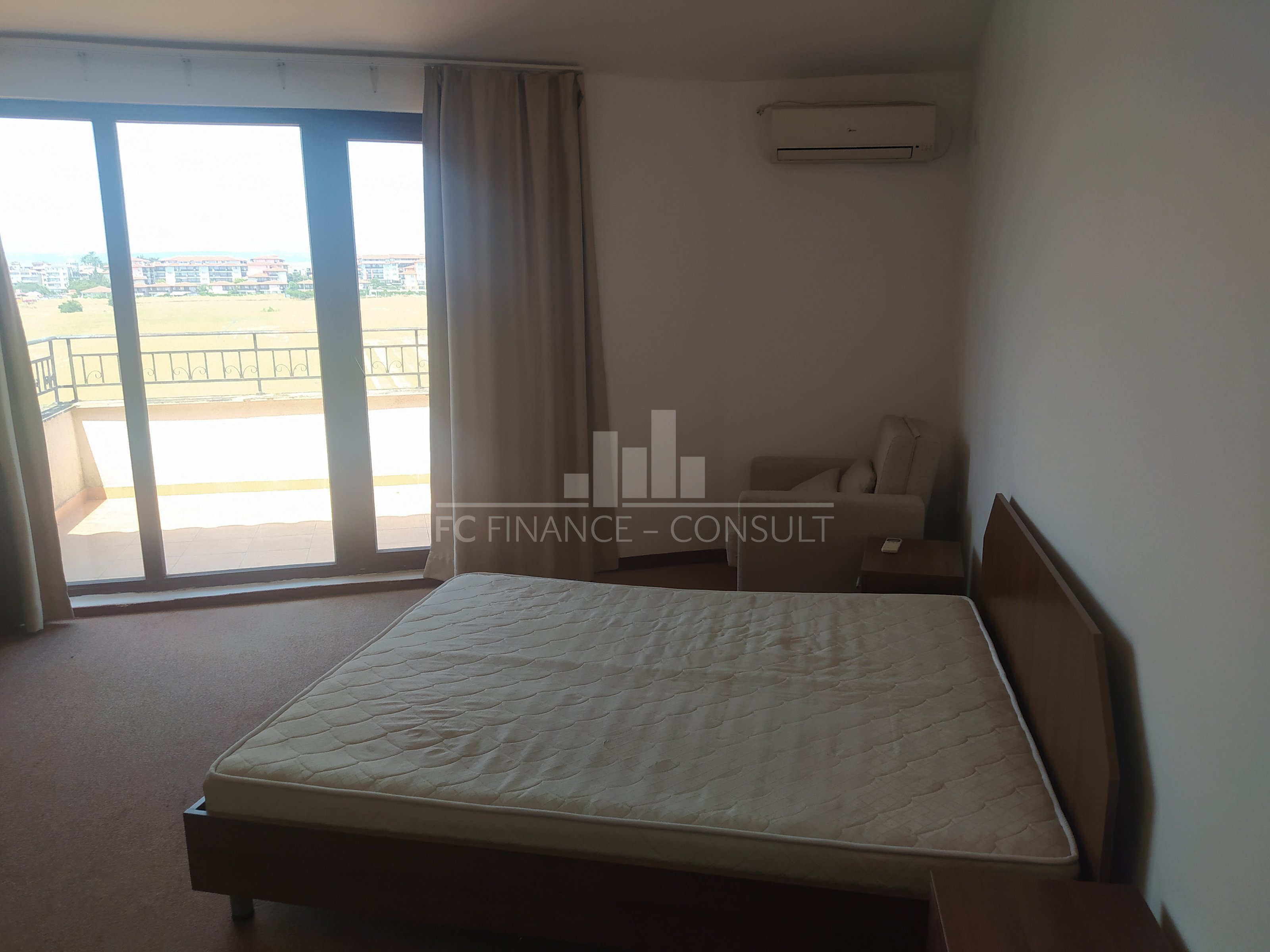 Тип на имота: обзаведен двустаен с частичен изглед море • Разпределение: коридор, дневна с кухненски кът, спалня, баня с тоалетна, голям балкон • Квадратура: 58 кв.м с общите части • Локация и удобства: комплексът е разположен на брега на морето, на тихо място, точно на плажа • Разстояние до плажа: 10 метра • Възможност за разсрочено плащане до 5 години: не • Първоначална вноска: 100% от сумата при сделка • Гледка: море, поле, град, улица • Възможност за паркиране: в комплекса, на улицата • Разрешение за ползване: да • Годишна такса поддръжка: 12 евро/м2/година • Комплексът предлага следните удобства: рецепция, басейни, включително детски басейн, ресторанти с българска / европейска кухня, магазин за хранителни стоки и магазин за плажни аксесоари, модерен фитнес център на закрито, сауни, СПА център, детски клуб, стаи за масаж, медицински център / медицинско обслужване в сезона, детски и спортни площадки, безплатен неохраняем и безплатен охраняем паркинг, индивидуални екскурзии, коли под наем, мини футбол, билярд и тенис на маса.