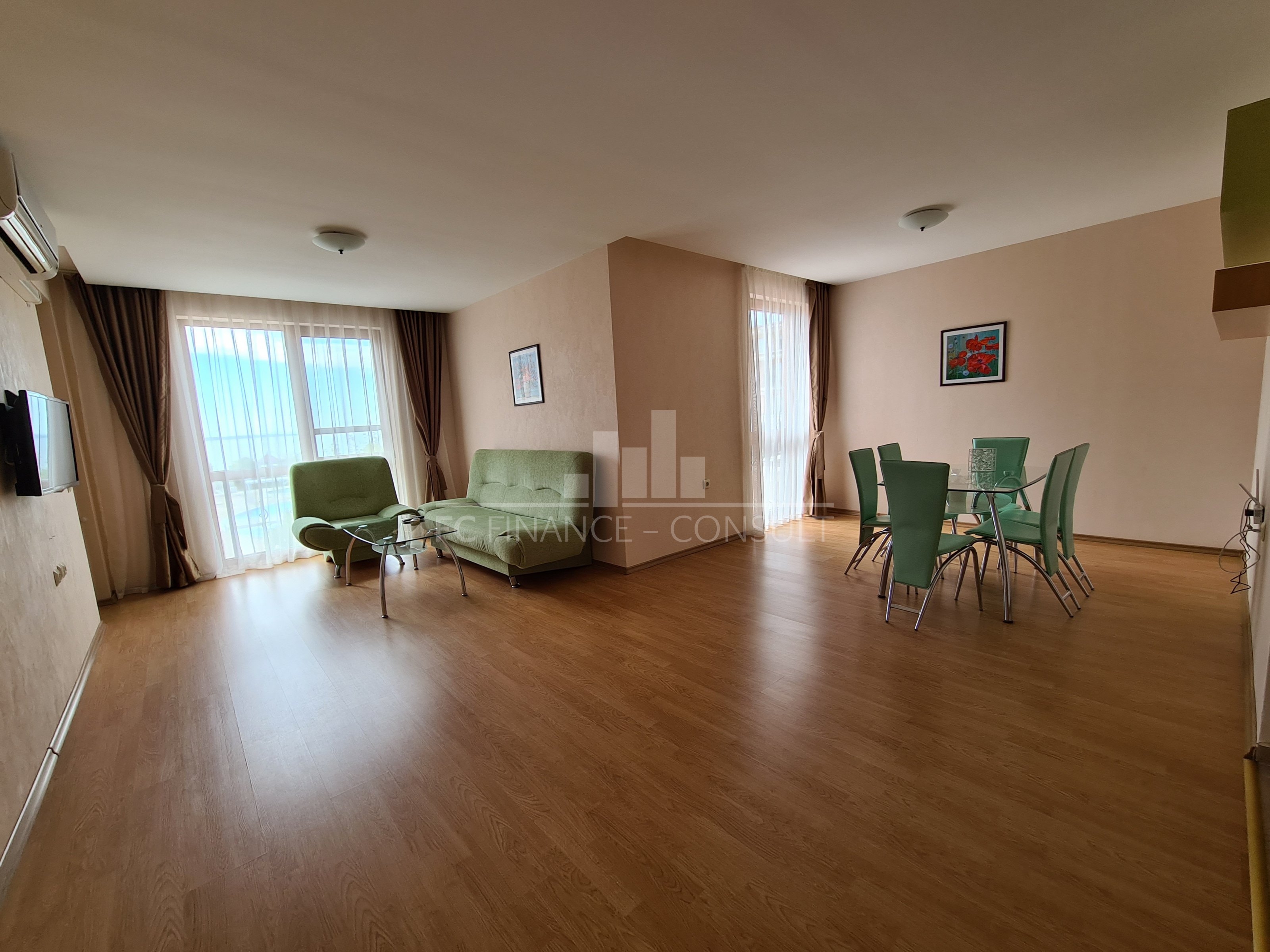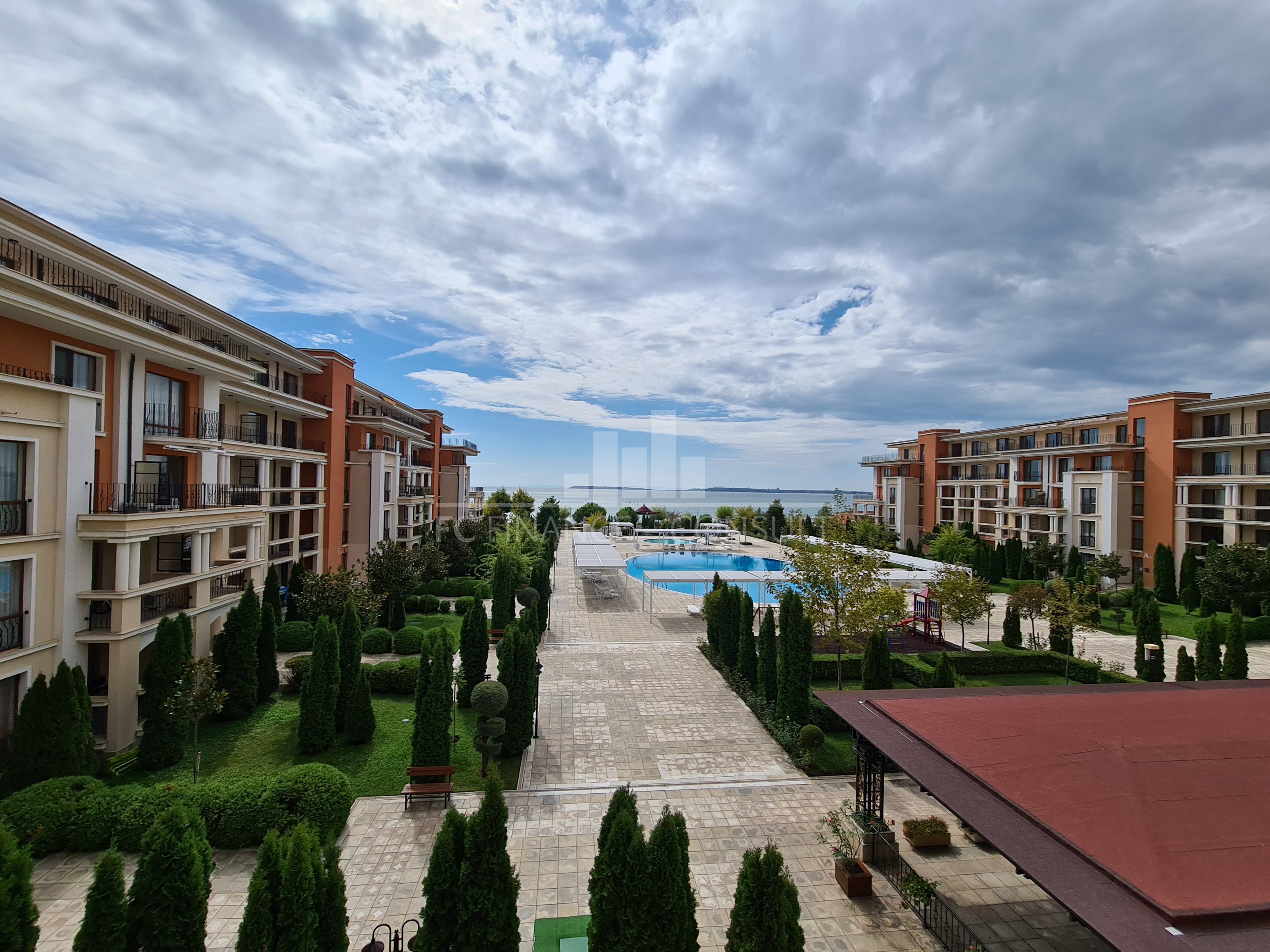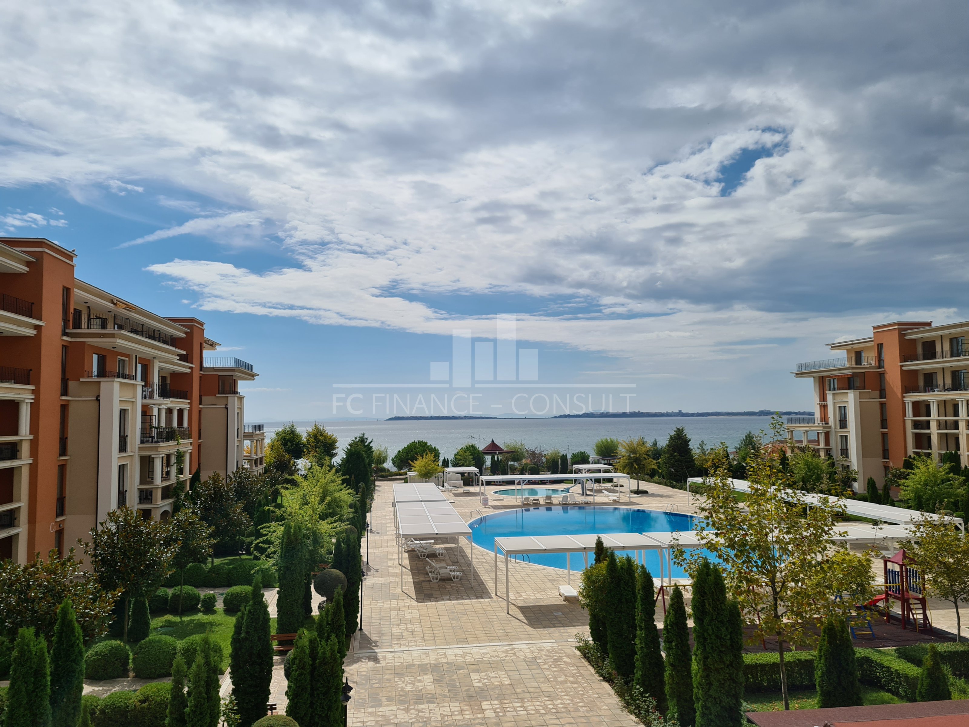 Тип на имота: тристаен, луксозен • Разпределение: коридор, дневна с кухненски кът, две спални, терсаса • Квадратура: 128 кв.м с вкл.общи части • Локация и удобства: комплексът е разположен на брега на морето • Възможност за разсрочено плащане до 7години: да • Първоначална вноска: 20% • Панорамна гледка към: градина, басейн, море • Възможност за паркиране: в комплекса, на улицата. Уникален, луксозен жилищен комплекс на първа линия. Разположен в северната част на Слънчев бряг, много близо до град Свети Влас. Повечето от апартаментите предлагат прекрасна гледка към морето. Благодарение на архитектурния проект, добре изпълнените довършителни работи с висококачествени строителни материали и най-важното - уникалното местоположение на морския бряг, този жилищен комплекс е идеален както за инвестиция, така и за втори дом и целогодишно живеене. Комплексът е завършен (с издаден Акт 16), предлага апартаменти с 1-2-3 спални и разполага със следните удобства: 30-метров плувен басейн, разположен в центъра на чудесно подреден просторен двор; детски басейн; фитнес; стая за масажи; уютен ресторант с лятна тераса; тенис корт / футболно игрище; детски площадки; зона за отдих; магазин за хранителни и плажни стоки; безплатен и неохраняем паркинг за собствениците на апартаменти; пране / химическо чистене; целогодишна рецепция; охрана; поддръжка. Собствениците заплащат годишна такса за поддръжка и управление в размер на 14 евро (с включен ДДС) на квадратен метър от общата площ на апартамента. Тази такса обхваща следното: поддръжка на територията на комплекса; поддръжка на общите части на имотите; поддръжка и ремонт на инфраструктурата и комуникациите; поддръжка на басейните; поддръжка на зелената площ на комплекса; целогодишна охрана; ползване на басейни; електрическо осветление на общата територия; електрическо осветление на общите части на сградата. Чудесна възможност за покупка на апартамент на брега на морето!