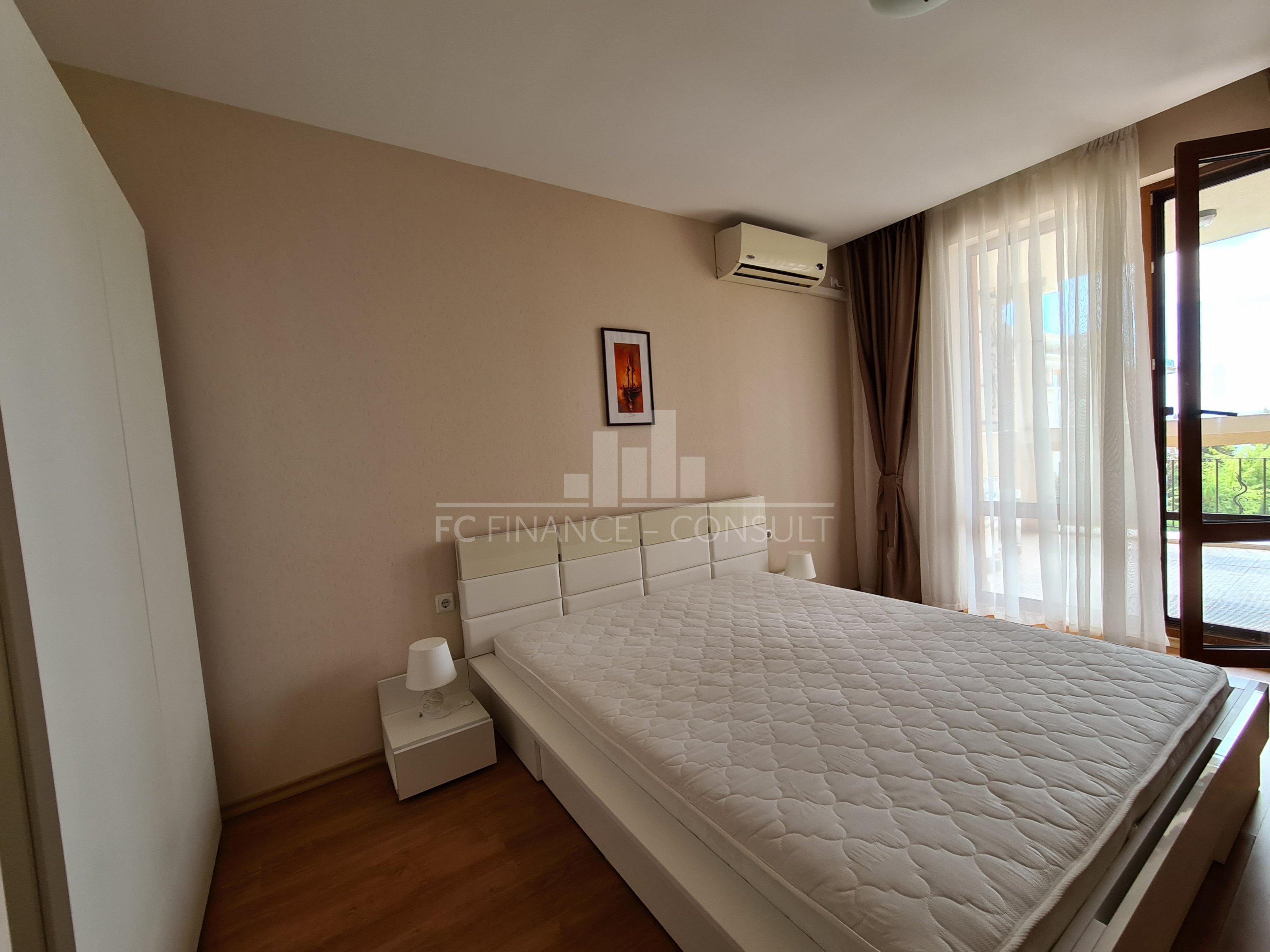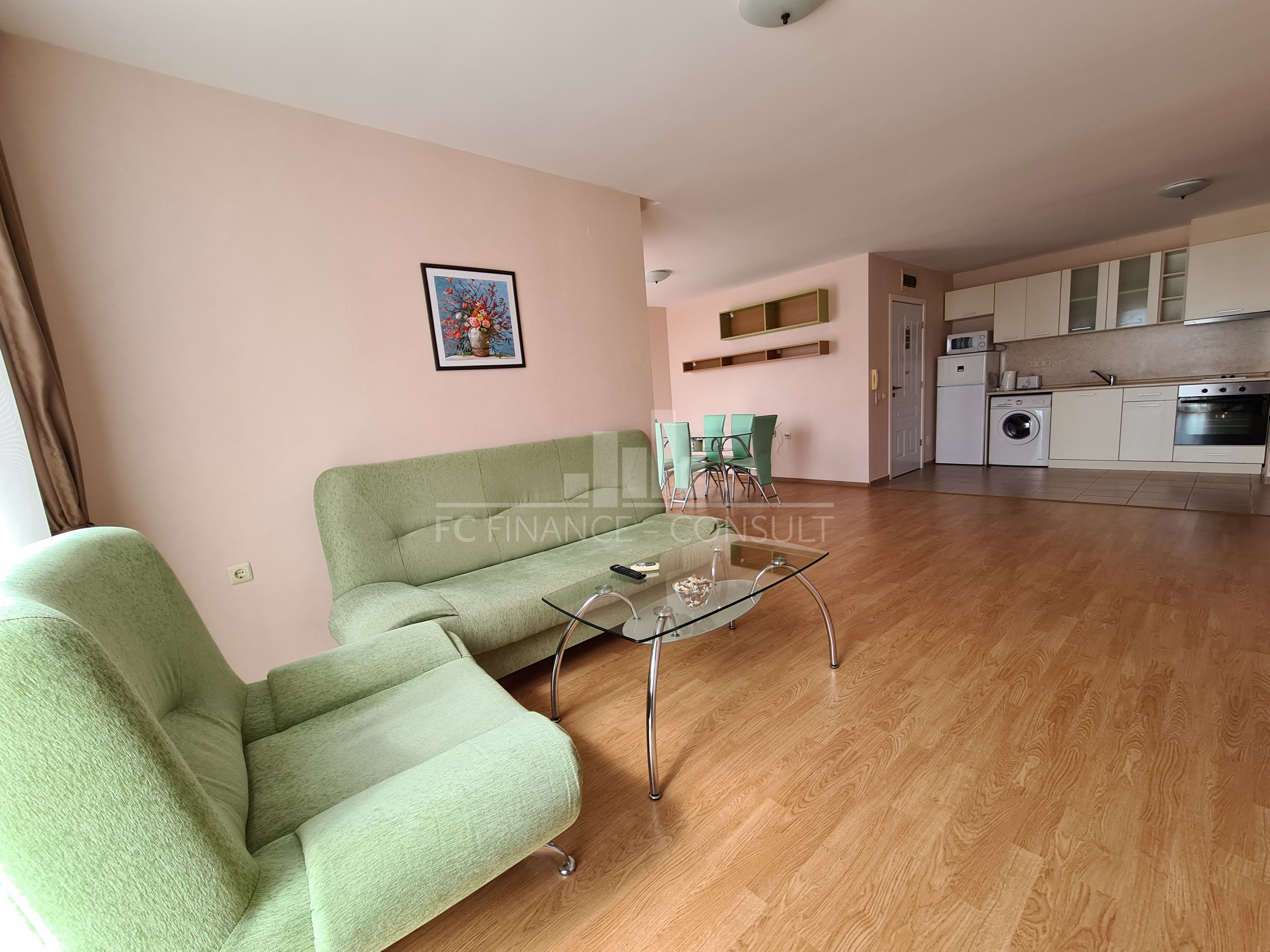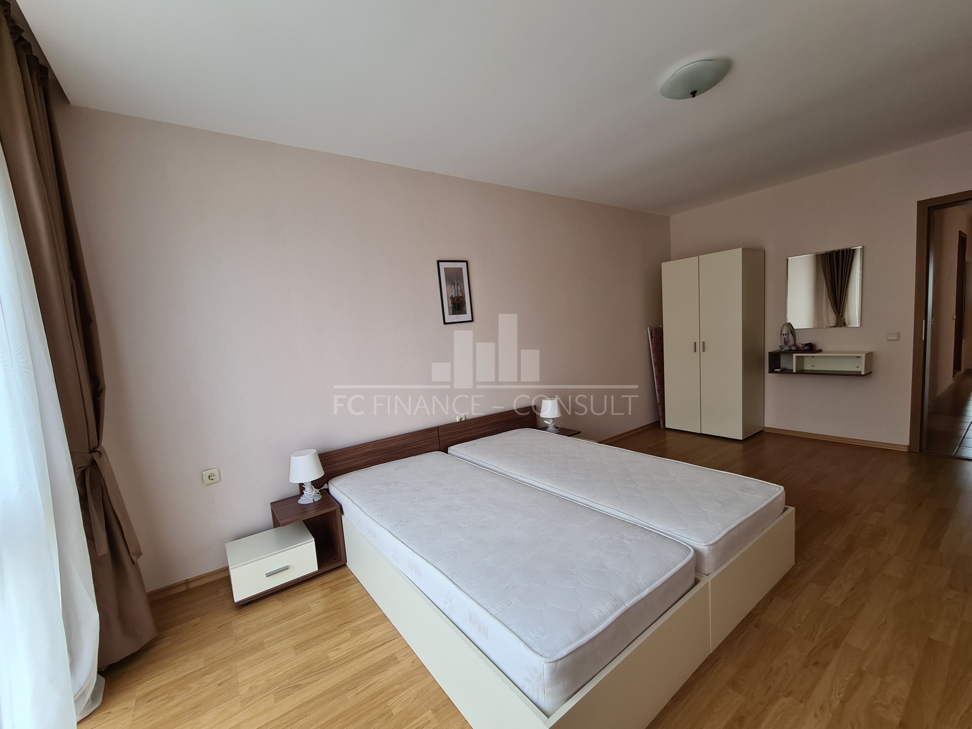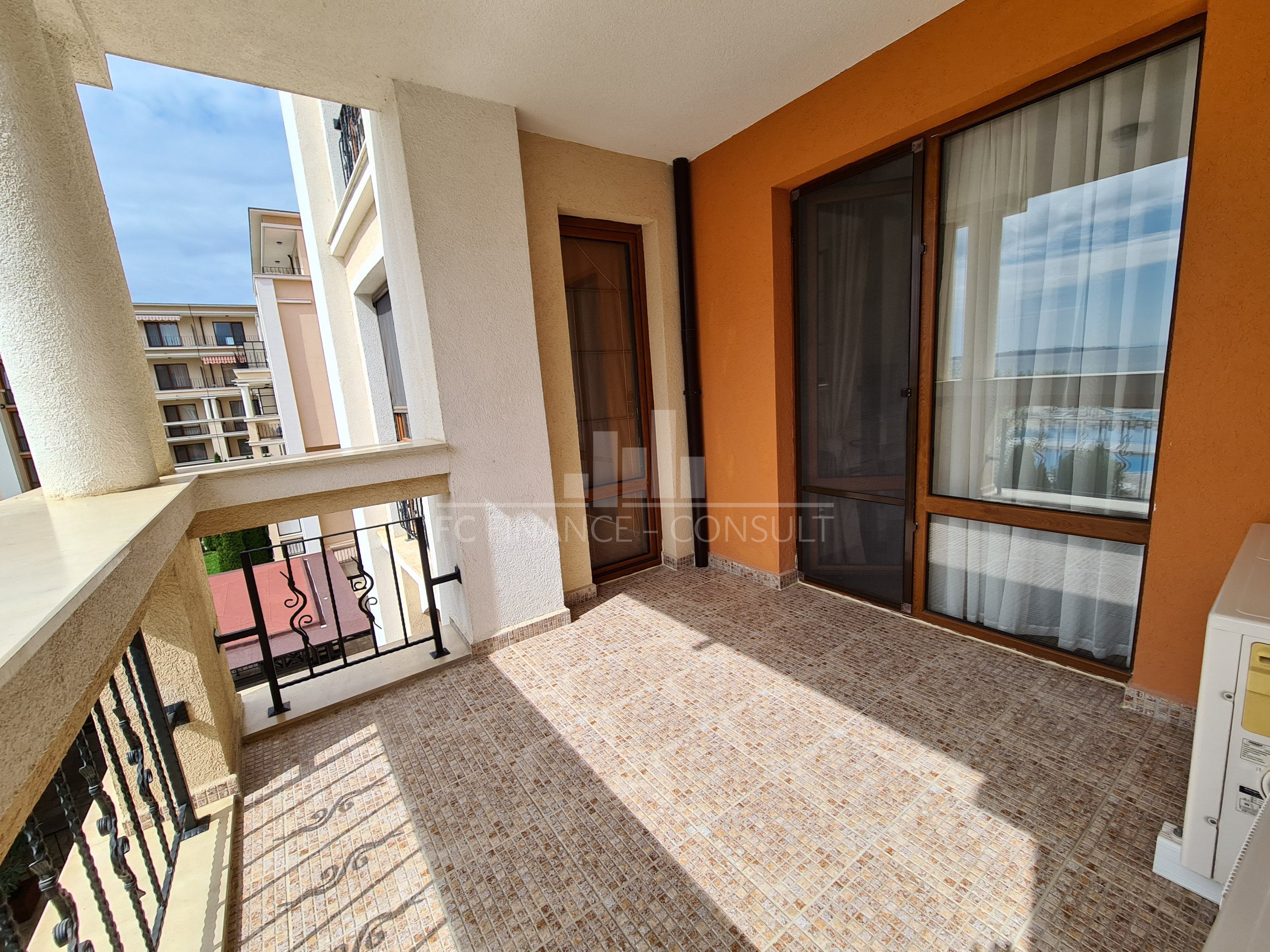 Тип на имота: тристаен, луксозен • Разпределение: коридор, дневна с кухненски кът, две спални, терсаса • Квадратура: 128 кв.м с вкл.общи части • Локация и удобства: комплексът е разположен на брега на морето • Възможност за разсрочено плащане до 7години: да • Първоначална вноска: 20% • Панорамна гледка към: градина, басейн, море • Възможност за паркиране: в комплекса, на улицата. Уникален, луксозен жилищен комплекс на първа линия. Разположен в северната част на Слънчев бряг, много близо до град Свети Влас. Повечето от апартаментите предлагат прекрасна гледка към морето. Благодарение на архитектурния проект, добре изпълнените довършителни работи с висококачествени строителни материали и най-важното - уникалното местоположение на морския бряг, този жилищен комплекс е идеален както за инвестиция, така и за втори дом и целогодишно живеене. Комплексът е завършен (с издаден Акт 16), предлага апартаменти с 1-2-3 спални и разполага със следните удобства: 30-метров плувен басейн, разположен в центъра на чудесно подреден просторен двор; детски басейн; фитнес; стая за масажи; уютен ресторант с лятна тераса; тенис корт / футболно игрище; детски площадки; зона за отдих; магазин за хранителни и плажни стоки; безплатен и неохраняем паркинг за собствениците на апартаменти; пране / химическо чистене; целогодишна рецепция; охрана; поддръжка. Собствениците заплащат годишна такса за поддръжка и управление в размер на 14 евро (с включен ДДС) на квадратен метър от общата площ на апартамента. Тази такса обхваща следното: поддръжка на територията на комплекса; поддръжка на общите части на имотите; поддръжка и ремонт на инфраструктурата и комуникациите; поддръжка на басейните; поддръжка на зелената площ на комплекса; целогодишна охрана; ползване на басейни; електрическо осветление на общата територия; електрическо осветление на общите части на сградата. Чудесна възможност за покупка на апартамент на брега на морето!