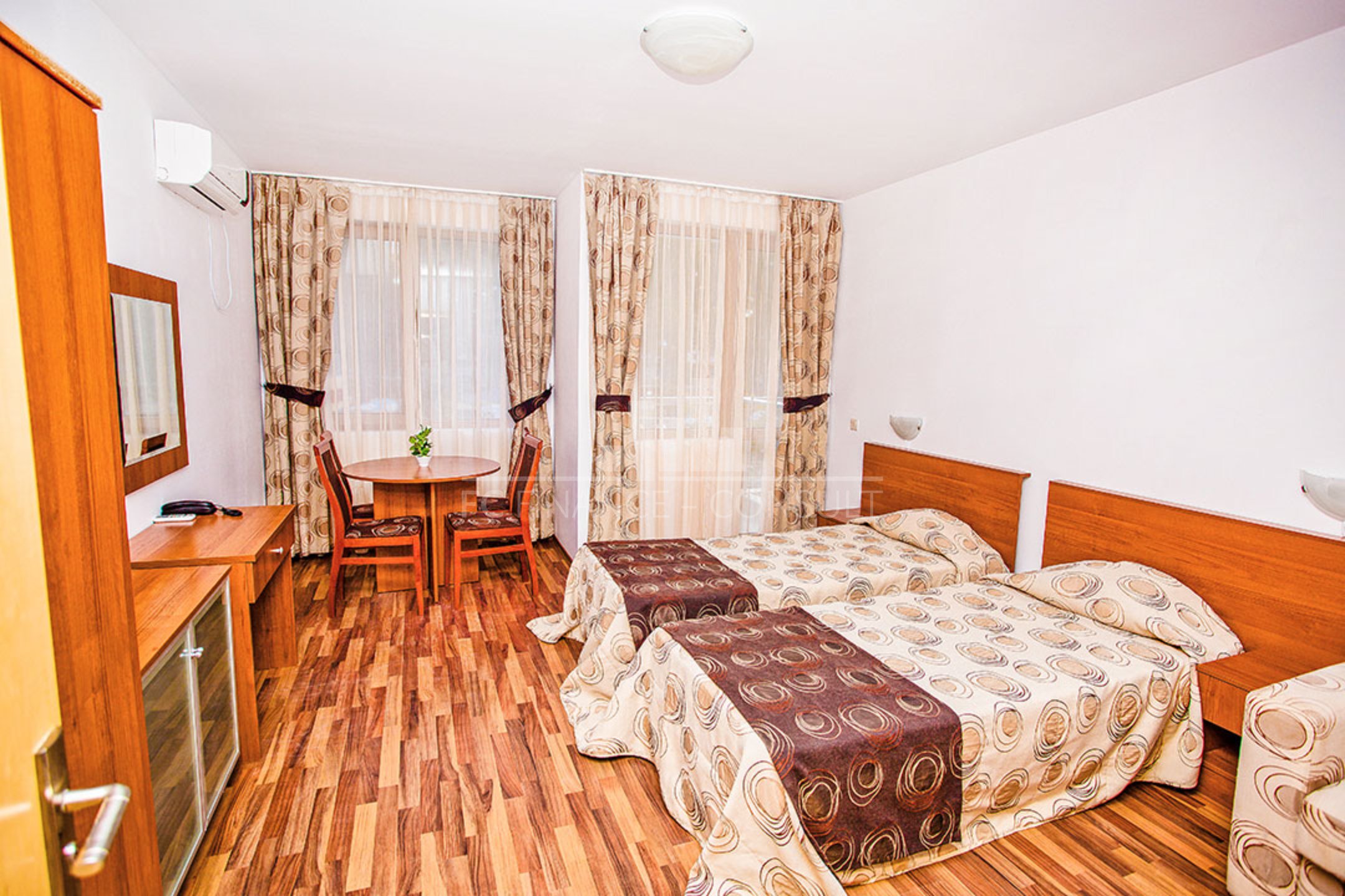 Стилен живот на морето - ключовете получавате още при подписване на договора! Напълно завършен и обзаведен жилищен комплекс в Слънчев бряг, разположен на границата с историческия град Несебър. Само на няколко минути пеша от плажа, този затворен комплекс предлага готови за нанасяне апартаменти, подходящи както за целогодишно живеене, така и за доходоносен наем. Отлична локация - тишина, спокойствие и удобства на пешеходно разстояние. Напълно обзаведени двустайни и тристайни апартаменти. Басейн, озеленени площи, детска площадка. В близост до супермаркети, ресторанти, медицински центрове и развлечения. Перфектна среда за семейства, двойки и пенсионери. Гъвкав план на плащане - без нужда от банков кредит! Започнете да използвате апартамента си веднага след първата вноска! Само 10% от цената при подписване на предварителния договор. 15% след 2 месеца. Още 15% след 4 месеца. Оставащите 60% - чрез разсрочено плащане по нашата схема FC в тримесечни вноски: До 3 години - с годишна лихва 3.5%. До 5 години - с годишна лихва 6.5%. До 7 години - с годишна лихва 9.7%. Апартаментът може да се използва или отдава под наем веднага след плащане на първите 10% от стойността. Нотариалният акт се подписва след пълно изплащане.