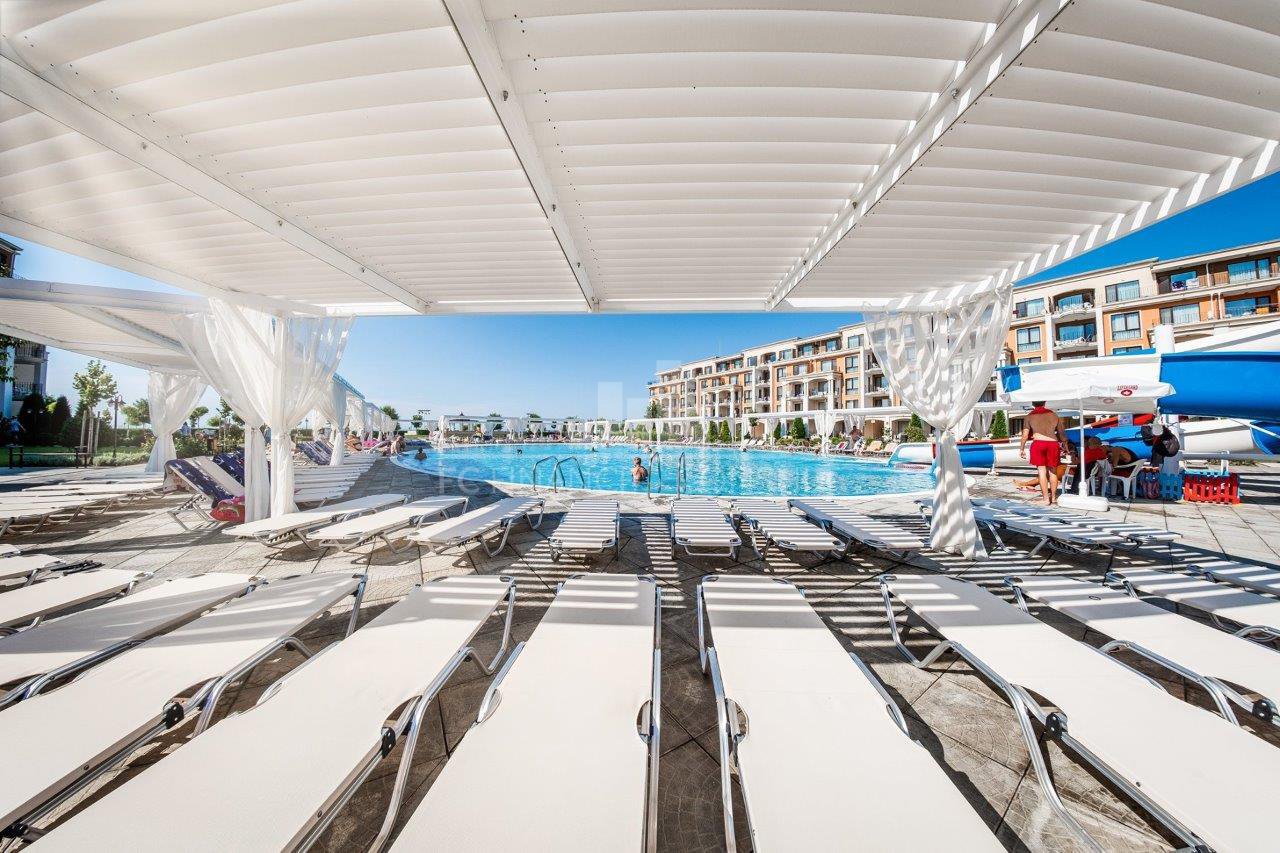 Възможност за гарантиран доход от наем. Възможност за разсрочено плащане до 7 години с първоначална вноска от 20%. Апартхотелът е лидер в класациите на хотели и апартхотели по Българското Черноморие: Отлично местоположение - първа линия. Град Свети Влас, на границата с курорта Слънчев Бряг, до яхтеното пристанище Марина Диневи. Гора, море, планина. Каква по- добра локация? Много зеленина и пространство за игри и разходки - територията е голяма, затворена, охранявана. Децата Ви ще играят и спортуват, Вие ще почивате спокойно. Мини аквапарк, басейни за деца и възрастни. Спортни и детски площадки, безплатни електронни игри. Ресторанти, бюфет, алакарт, снек -бар, бар край басейна. Анимация и детски клуб на ваше разположение. Денонощна рецепция. Най -високи хигиенни стандарти. Перфектно оборудвани апартаменти, удобни и комфортни. Ще се влюбите в гледката от Вашия апартамент! Ново висококачествено строителство в съответствие с всички стандарти и разпоредби. Радваме се да Ви предоставим възможността да закупите недвижим имот в апартхотел, с който се гордеем! Уникална възможност за инвестиране във високодоходен курортен имот. Собственикът на апартамента може или да използва апартамента сам и да зарадва близките си с възможността за прекрасна лятна ваканция на море, или да отдаде апартамента си под наем с ГАРАНТИРАН доход. Отдаването под наем не е задължение, а възможност, от която можете да се възползвате! Можете да си купите апартамент в най -добрия комплекс на брега на Черно море в България, точно до морето. Апартаменти от 66 000 евро до 600 000 евро, от компактно студио до луксозен четиристаен апартамент. Собствениците на апартаменти заплащат частта от разходите за поддържка и управление на комплекса, в размер на 21 евро/м2/година с вкл. ДДС, върху застроена площ, без общи части! Годишна такса се заплаща и за използването на интернет и телевизия, поддръжка на ключови карти в размер на 278 евро с ДДС. Плаща се застраховка за недвижимия имот - цената на основен застрахователен пакет за студио е 50 евро, за апартамент с една спалня е 60 евро, за апартамент с две спални е 70 евро и за апартамент с три спални е 85 евро. Ако токът и водата не се заплащат самостоятелно, т.е. няма индивидуални партиди, услугата за отчитане и плащане на сметки струва 30 евро годишно. Данъкът върху недвижимите имоти и сметосъбирането също могат да бъдат платени с помощта на нашата компания, по тарифите на общината. Без допълнителни такси за ремонт и обновяване на сгради и конструкции на територията, всичко е включено в договорената цена! Срещу допълнително заплащане, комплексът предлага разнообразни услуги - всичко, от което може да се нуждаете по време на лятната си почивка! Апартаментите са напълно завършени и изцяло обзаведени, готови за живеене и отдаване под наем, в съответствие със стандартите и изискванията на туроператорите в България. Довършителните работи в апартаментите са извършени с висококачествени материали. Комплексът е предназначен за целогодишно ползване. Монолитно строителство, използващо съвременни технологии с гарантирано високо качество. Схема на плащане: Минимално 20 % от продажната цена, платима при подписване на предварителен договор. Останалите 80% могат да бъдат платени по следния начин: до 1 година след подписване на предварителния договор - разсрочено плащ