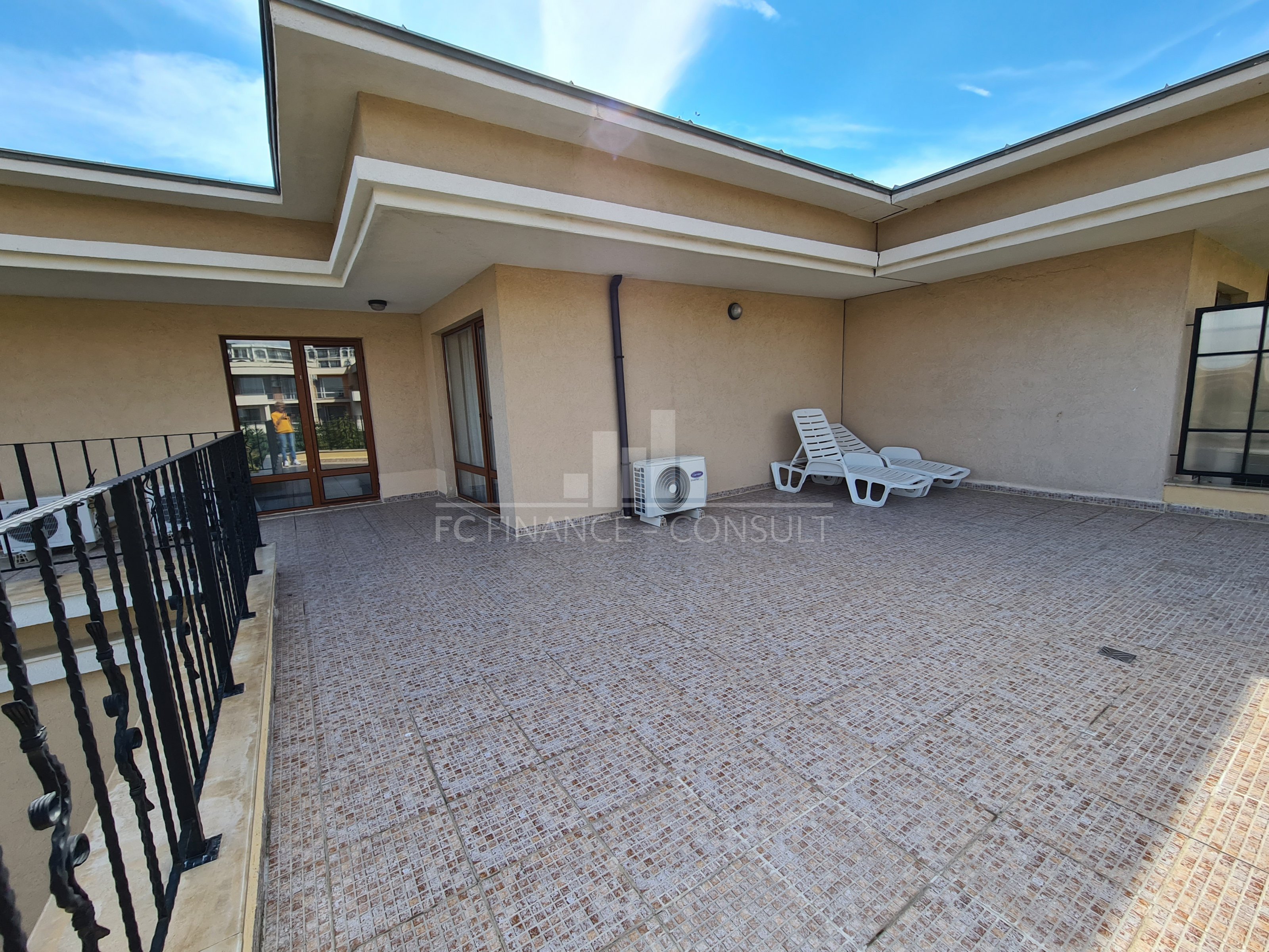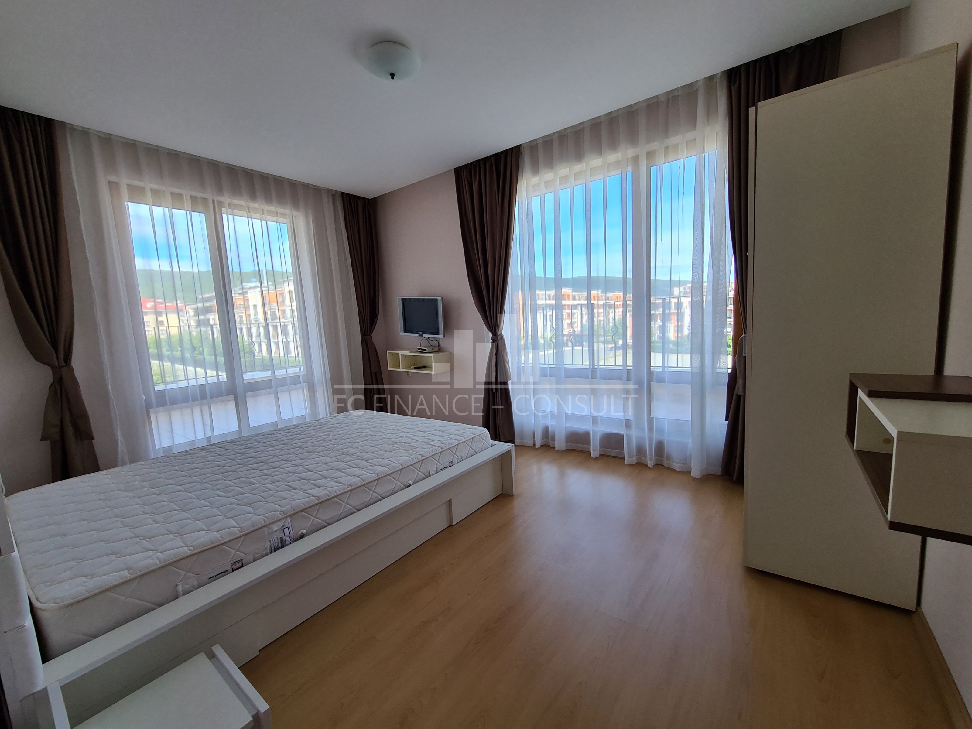Тип на имота: с три спални и хол • Разпределение: коридор, дневна с кухненски кът, 3 спални, балкон, тераса • Квадратура: 195 кв.м • Локация и удобства: комплексът е разположен на брега на морето • Възможност за разсрочено плащане до 7години: да • Първоначална вноска: 20% • Гледка: градина, басейн, море, планина • Възможност за паркиране: в комплекса, на улицата. Уникален, луксозен жилищен комплекс на първа линия. Разположен в северната част на Слънчев бряг, много близо до град Свети Влас. Повечето от апартаментите предлагат прекрасна гледка към морето. Благодарение на архитектурния проект, добре изпълнените довършителни работи с висококачествени строителни материали и най-важното - уникалното местоположение на морския бряг, този жилищен комплекс е идеален както за инвестиция, така и за втори дом и целогодишно живеене. Комплексът е завършен (с издаден Акт 16), предлага апартаменти с 1-2-3 спални и разполага със следните удобства: 30-метров плувен басейн, разположен в центъра на чудесно подреден просторен двор; детски басейн; фитнес; стая за масажи; уютен ресторант с лятна тераса; тенис корт / футболно игрище; детски площадки; зона за отдих; магазин за хранителни и плажни стоки; безплатен и неохраняем паркинг за собствениците на апартаменти; пране / химическо чистене; целогодишна рецепция; охрана; поддръжка. Собствениците заплащат годишна такса за поддръжка и управление в размер на 14 евро (с включен ДДС) на квадратен метър от общата площ на апартамента. Тази такса обхваща следното: поддръжка на територията на комплекса; поддръжка на общите части на имотите; поддръжка и ремонт на инфраструктурата и комуникациите; поддръжка на басейните; поддръжка на зелената площ на комплекса; целогодишна охрана; ползване на басейни; електрическо осветление на общата територия; електрическо осветление на общите части на сградата. Чудесна възможност за покупка на апартамент на брега на морето!