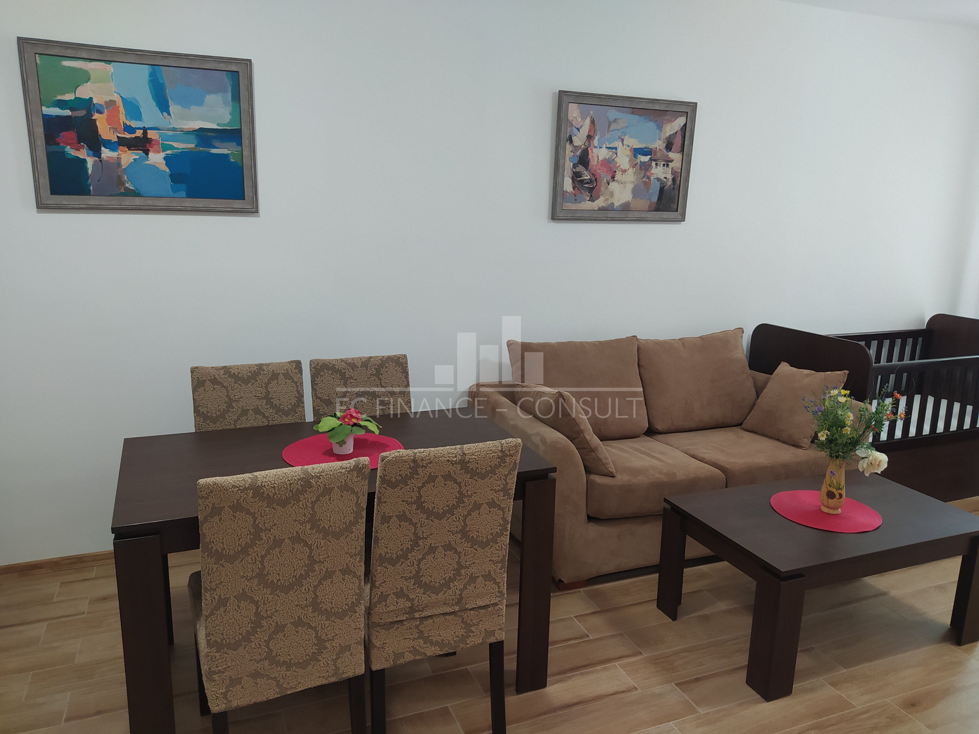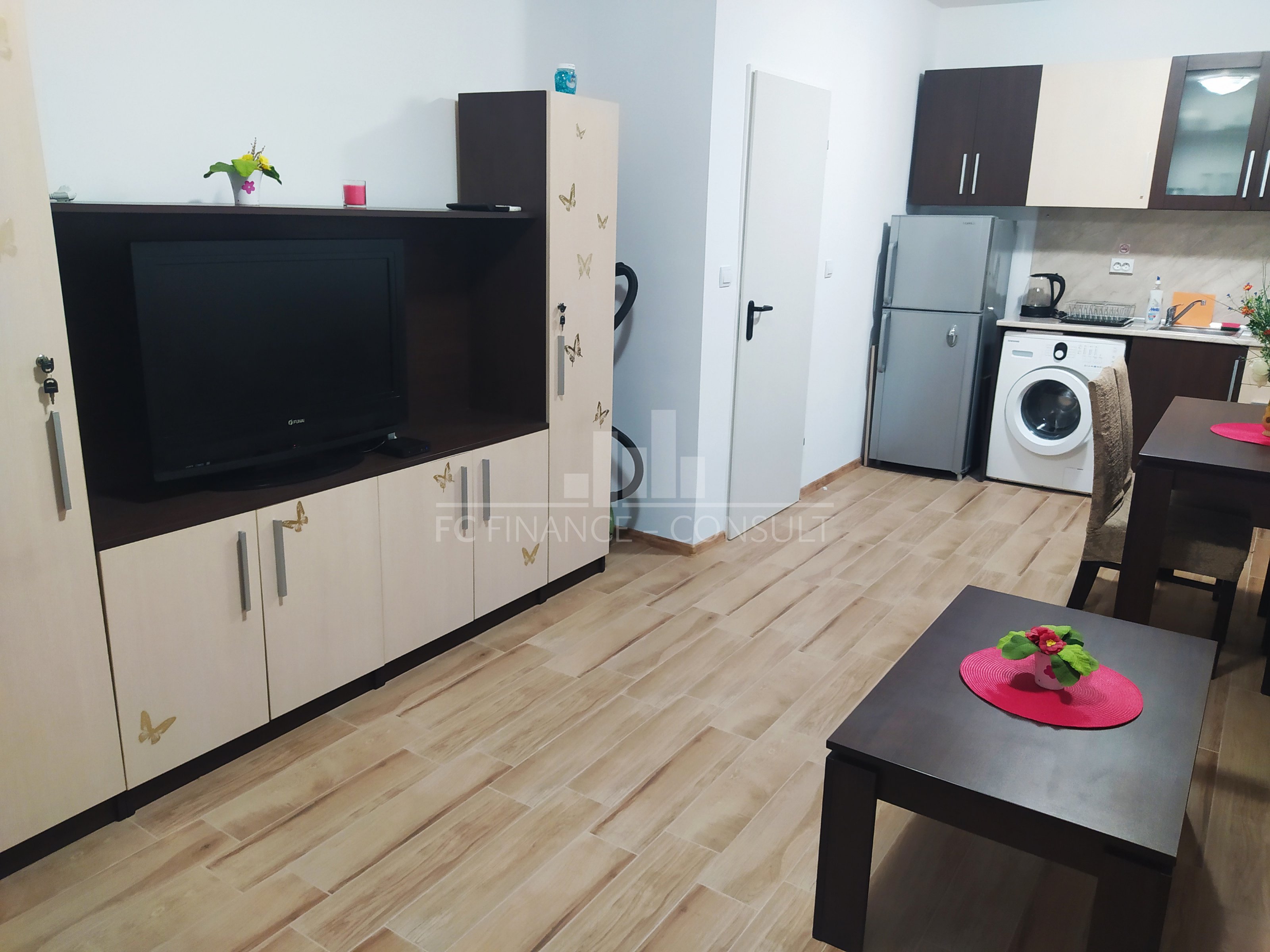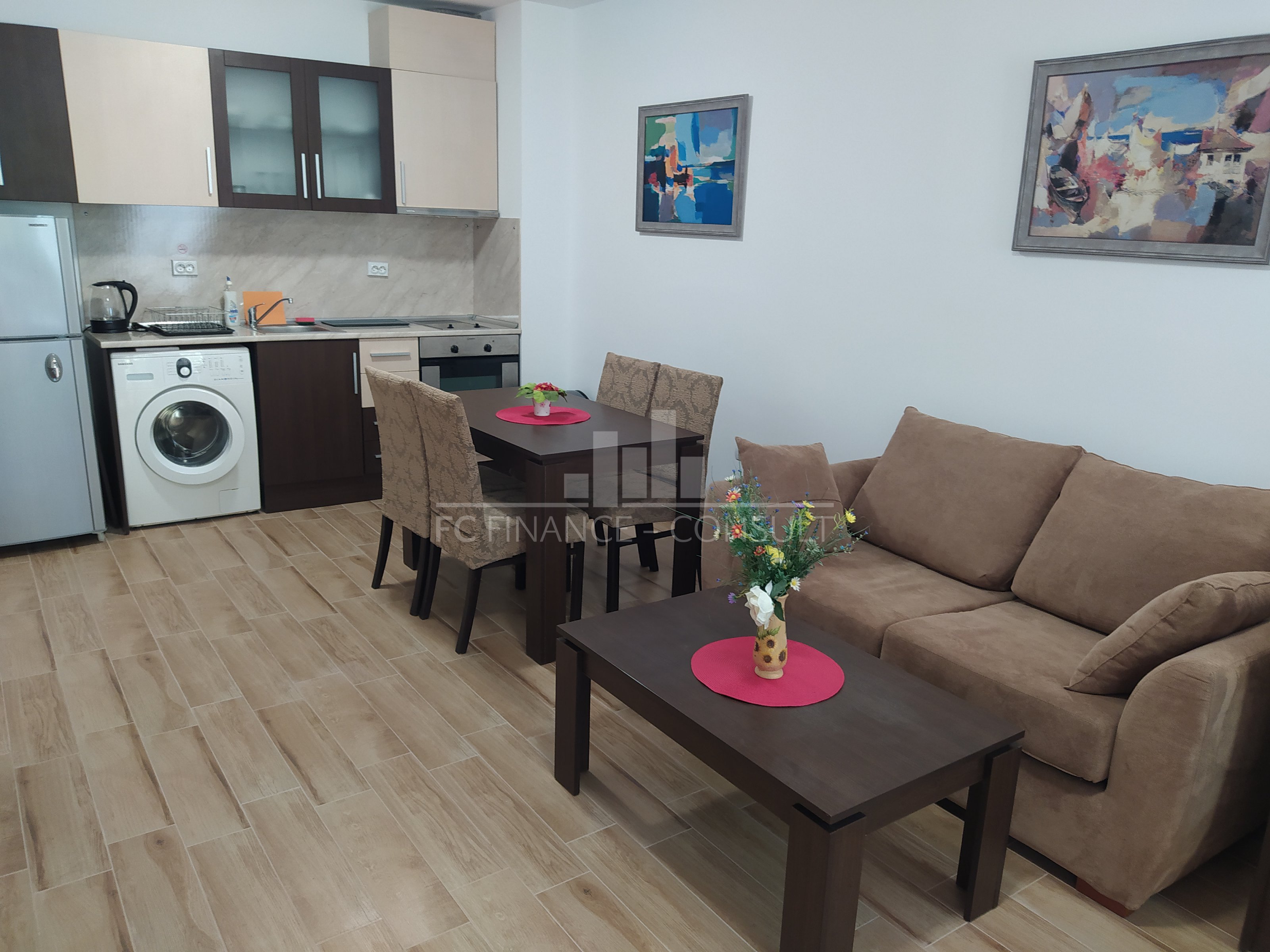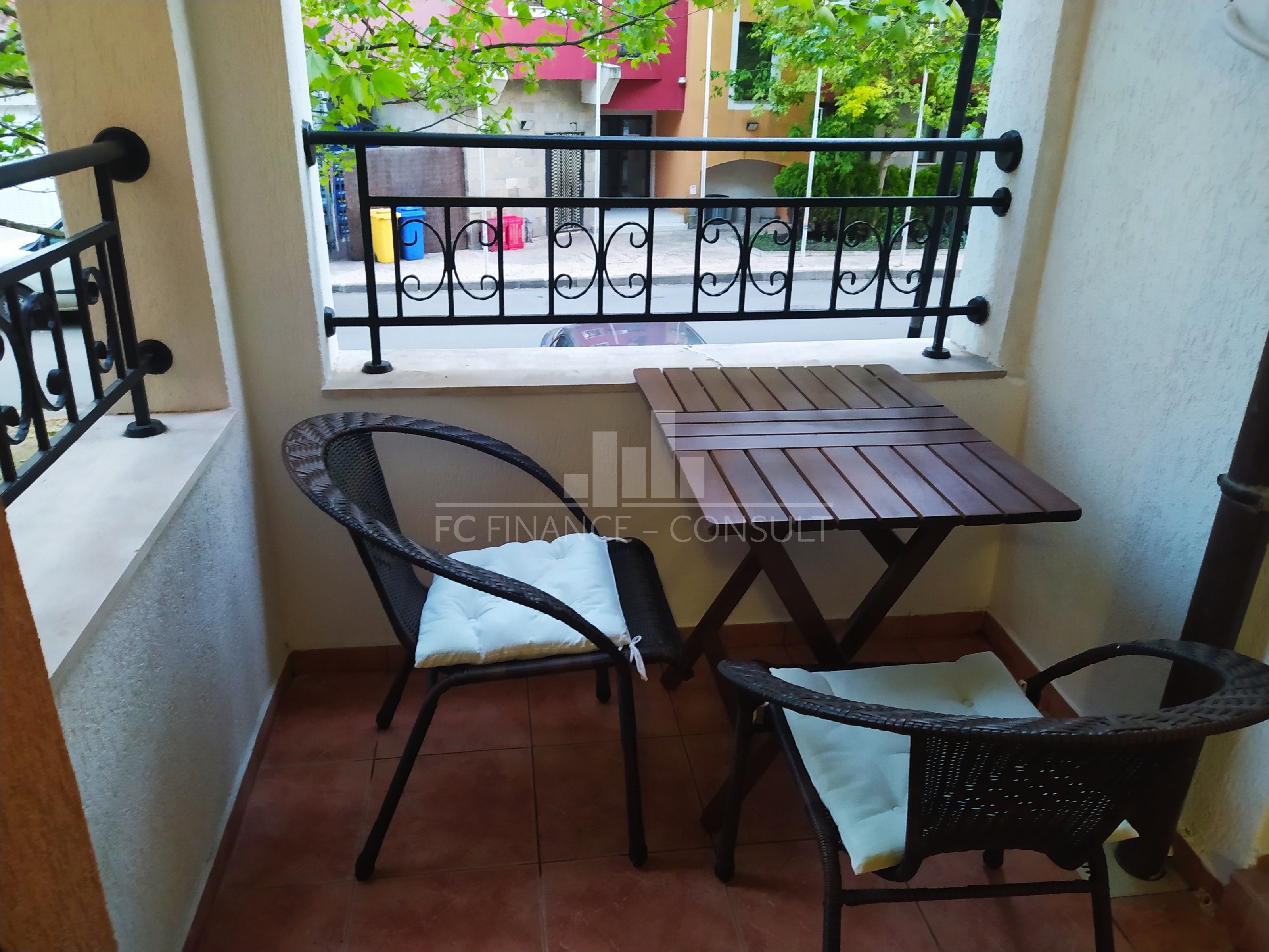 Тип на имота: обзаведен, след ремонт, едноспален в много добро състояние с изглед градина и улица • Разпределение: коридор, дневна с кухненски кът, спалня, баня с тоалетна, балкон • Квадратура: 64 кв.м с общите части • Локация и удобства: комплексът е разположен на брега на морето, на тихо място, точно на плажа • Разстояние до плажа: 10 метра • Възможност за разсрочено плащане до 5 години: да • Първоначална вноска: 30000 евро • Гледка: улица, градина • Възможност за паркиране: в комплекса, на улицата • Разрешение за ползване: да • Годишна такса поддръжка: 12 евро/м2/година • Комплексът предлага следните удобства: рецепция, басейни, включително детски басейн, ресторанти с българска / европейска кухня, магазин за хранителни стоки и магазин за плажни аксесоари, модерен фитнес център на закрито, сауни, СПА център, детски клуб, стаи за масаж, медицински център / медицинско обслужване в сезона, детски и спортни площадки, безплатен неохраняем и безплатен охраняем паркинг, индивидуални екскурзии, коли под наем, мини футбол, билярд и тенис на маса.