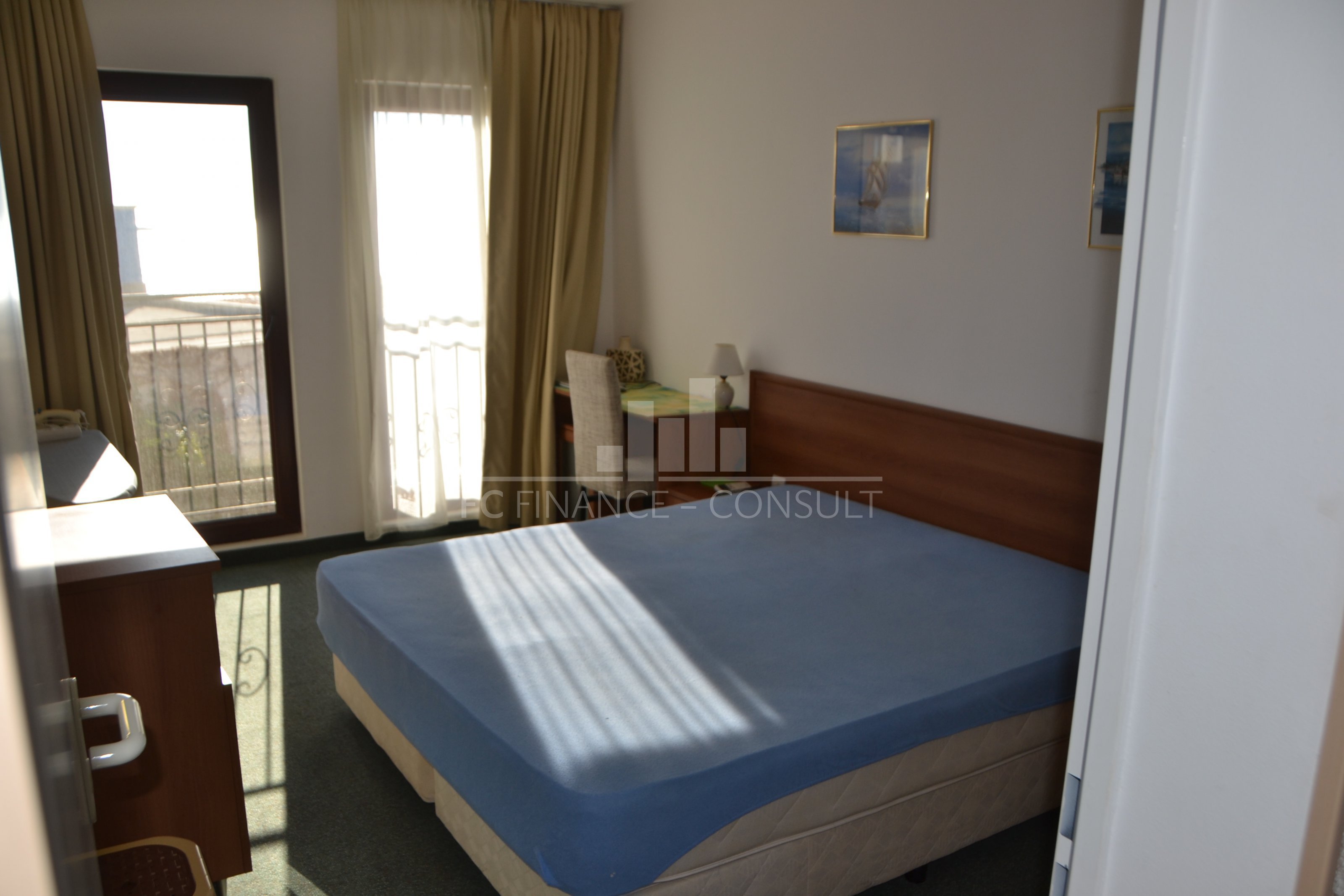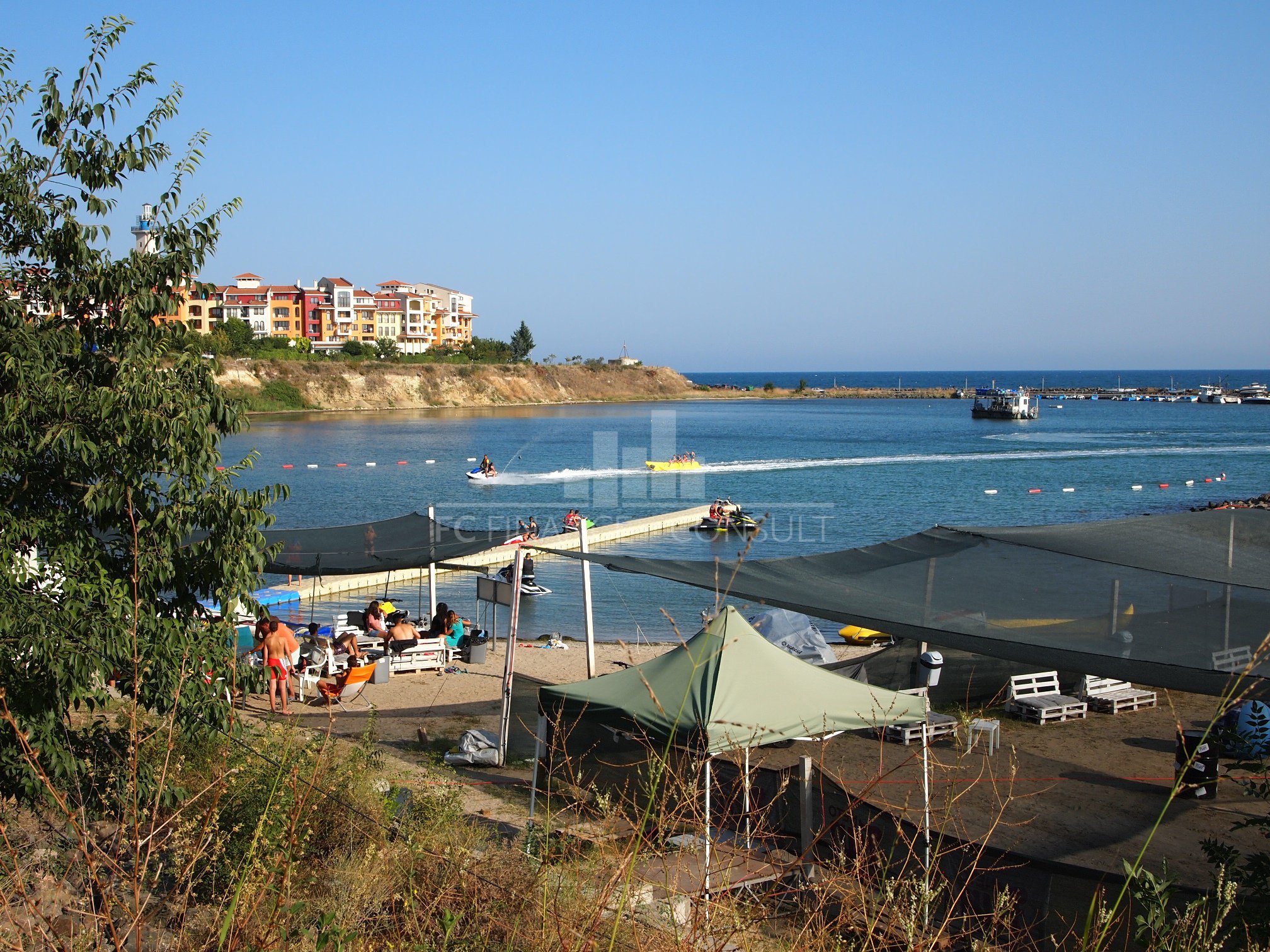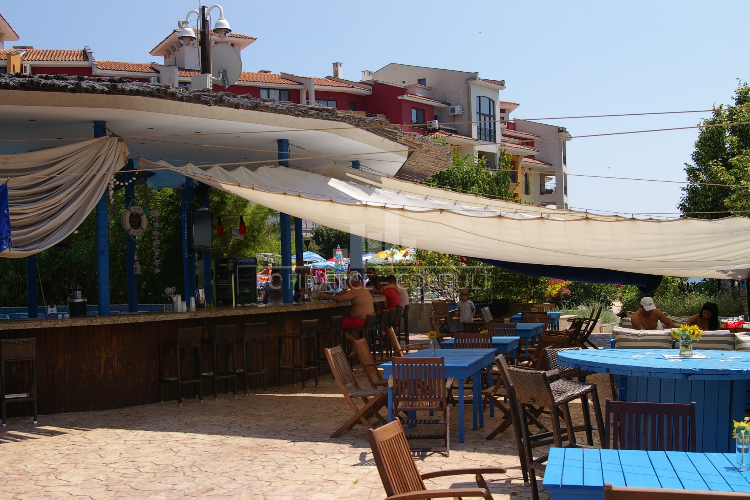 Тип на имота: обзаведен, елегантен, двустаен, с директен изглед море в много добро състояние • Разпределение: коридор, дневна с кухненски кът, спалня, баня с тоалетна, балкон • Квадратура: 84 кв.м с общите части • Локация и удобства: комплексът е разположен на брега на морето, на тихо място, точно на плажа • Разстояние до плажа: 10 метра • Възможност за разсрочено плащане до 5 години: не • Първоначална вноска: 100% от цената • Гледка: море, градина • Възможност за паркиране: в комплекса, на улицата • Разрешение за ползване: да • Годишна такса поддръжка: 12 евро/м2/година • Комплексът предлага следните удобства: рецепция, басейни, включително детски басейн, ресторанти с българска / европейска кухня, магазин за хранителни стоки и магазин за плажни аксесоари, модерен фитнес център на закрито, сауни, СПА център, детски клуб, стаи за масаж, медицински център / медицинско обслужване в сезона, детски и спортни площадки, безплатен неохраняем и безплатен охраняем паркинг, индивидуални екскурзии, коли под наем, мини футбол, билярд и тенис на маса.
