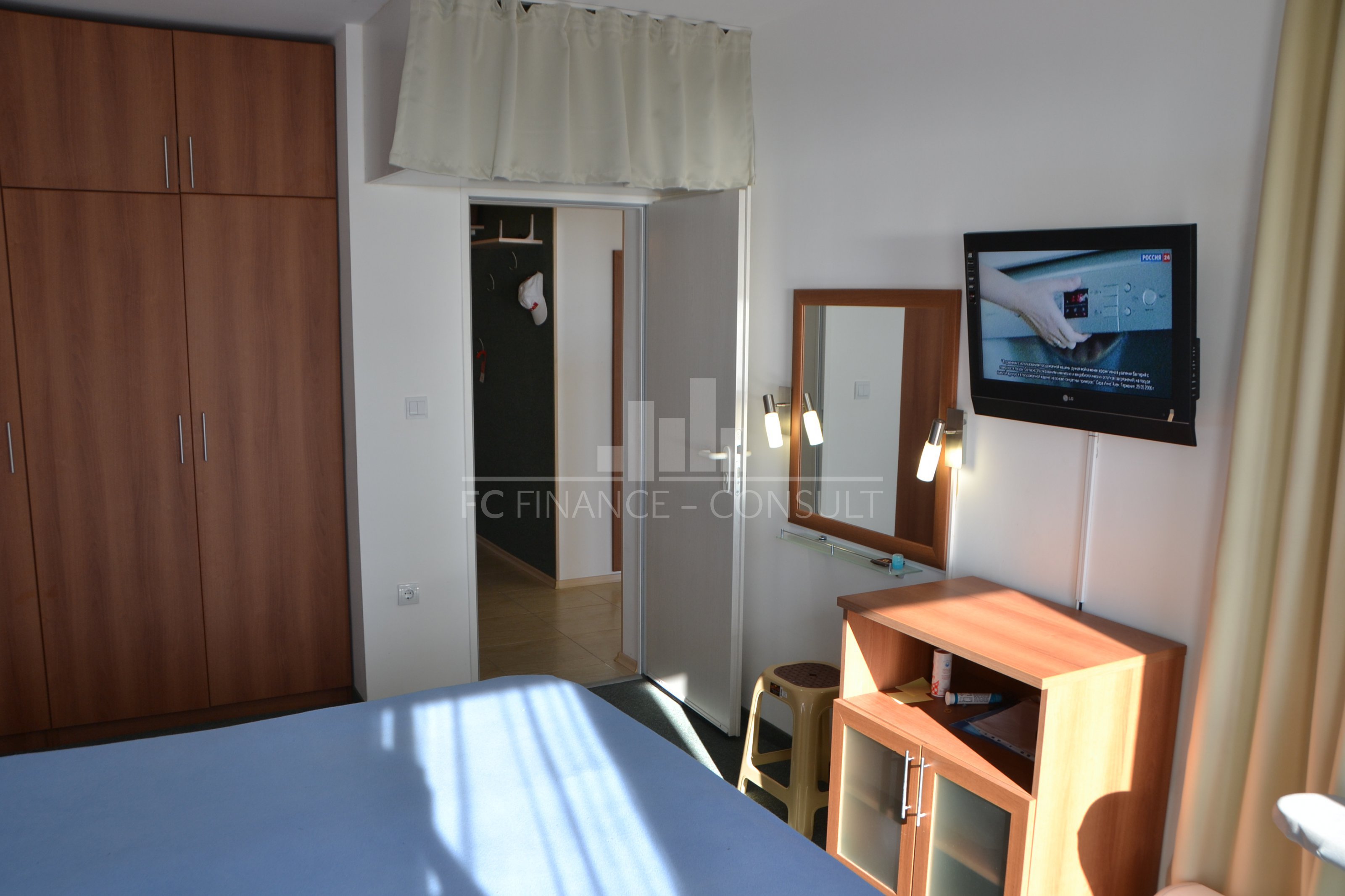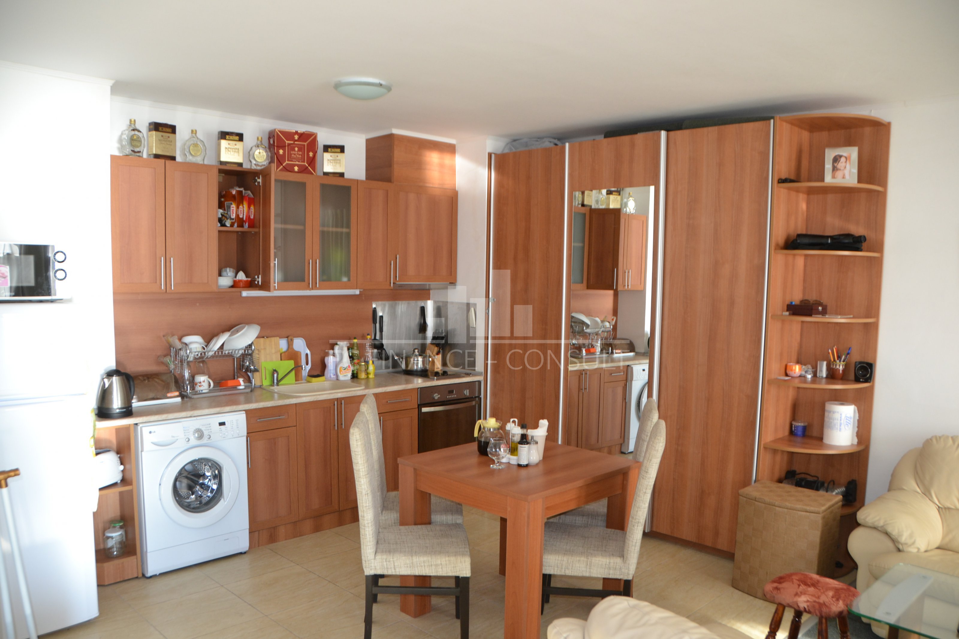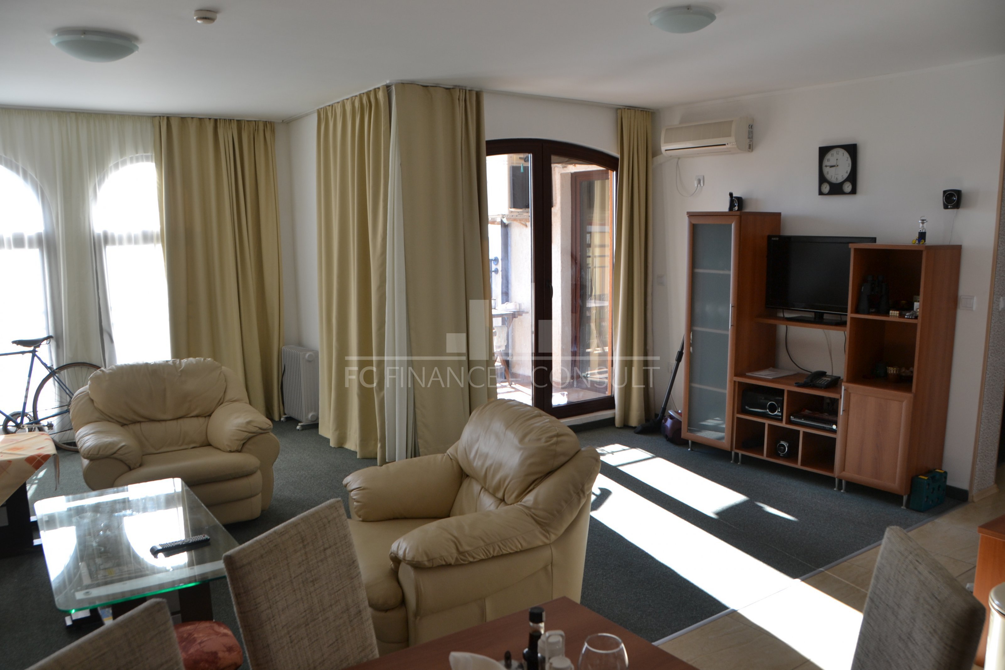Тип на имота: обзаведен, елегантен, двустаен, с директен изглед море в много добро състояние • Разпределение: коридор, дневна с кухненски кът, спалня, баня с тоалетна, балкон • Квадратура: 84 кв.м с общите части • Локация и удобства: комплексът е разположен на брега на морето, на тихо място, точно на плажа • Разстояние до плажа: 10 метра • Възможност за разсрочено плащане до 5 години: не • Първоначална вноска: 100% от цената • Гледка: море, градина • Възможност за паркиране: в комплекса, на улицата • Разрешение за ползване: да • Годишна такса поддръжка: 12 евро/м2/година • Комплексът предлага следните удобства: рецепция, басейни, включително детски басейн, ресторанти с българска / европейска кухня, магазин за хранителни стоки и магазин за плажни аксесоари, модерен фитнес център на закрито, сауни, СПА център, детски клуб, стаи за масаж, медицински център / медицинско обслужване в сезона, детски и спортни площадки, безплатен неохраняем и безплатен охраняем паркинг, индивидуални екскурзии, коли под наем, мини футбол, билярд и тенис на маса.