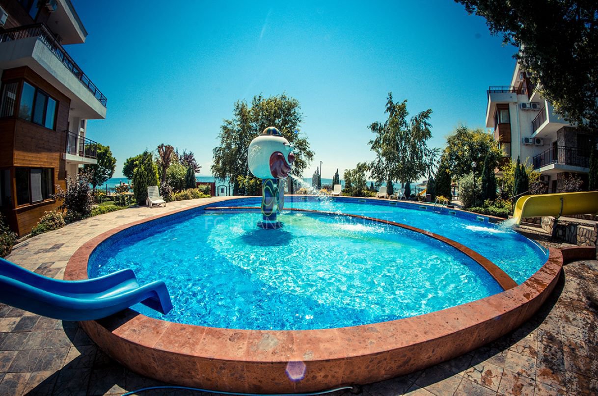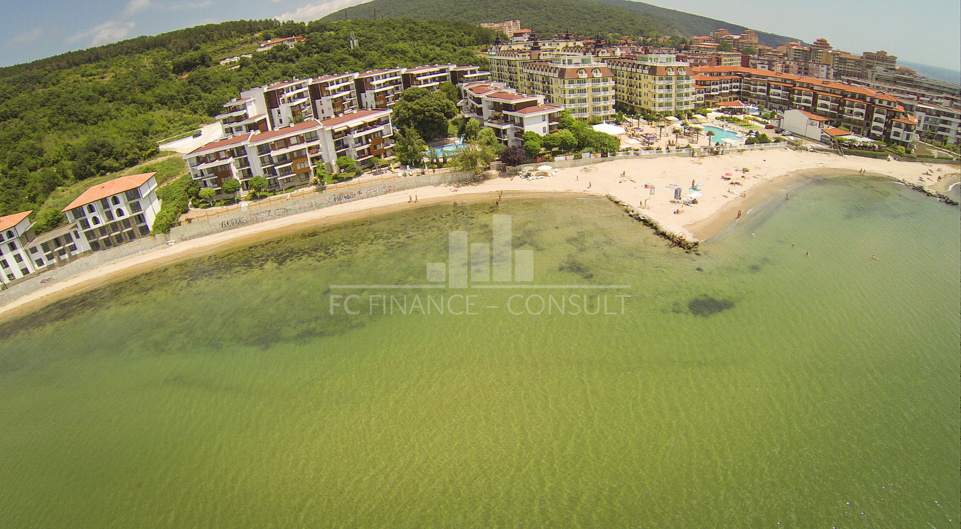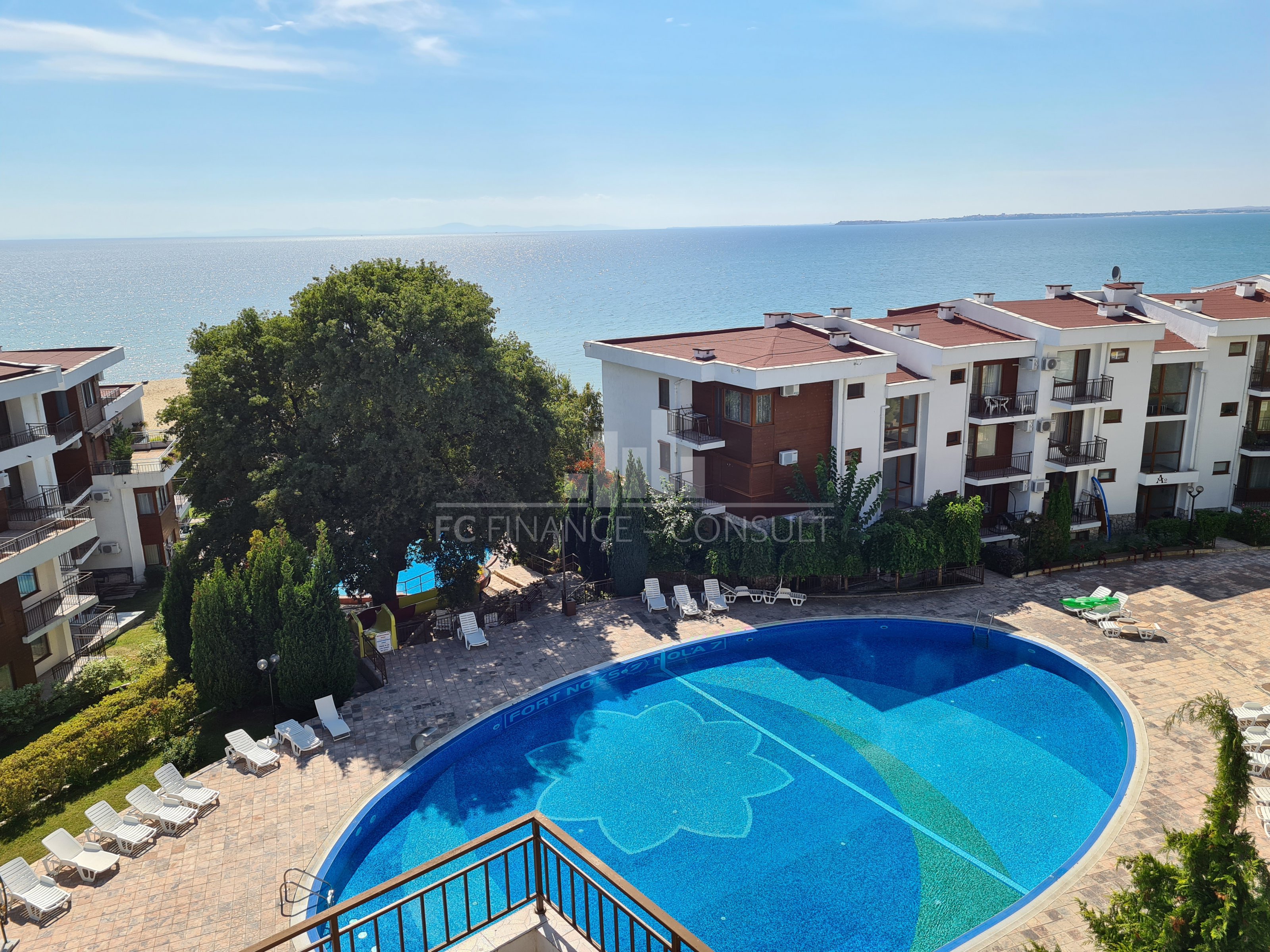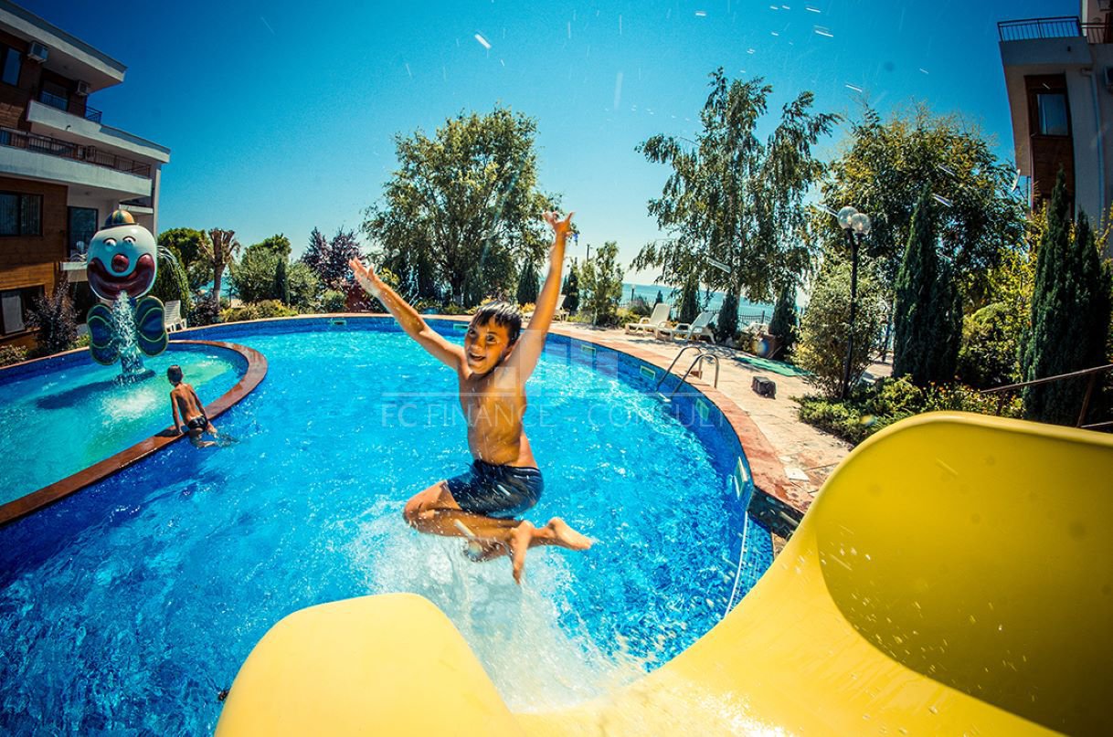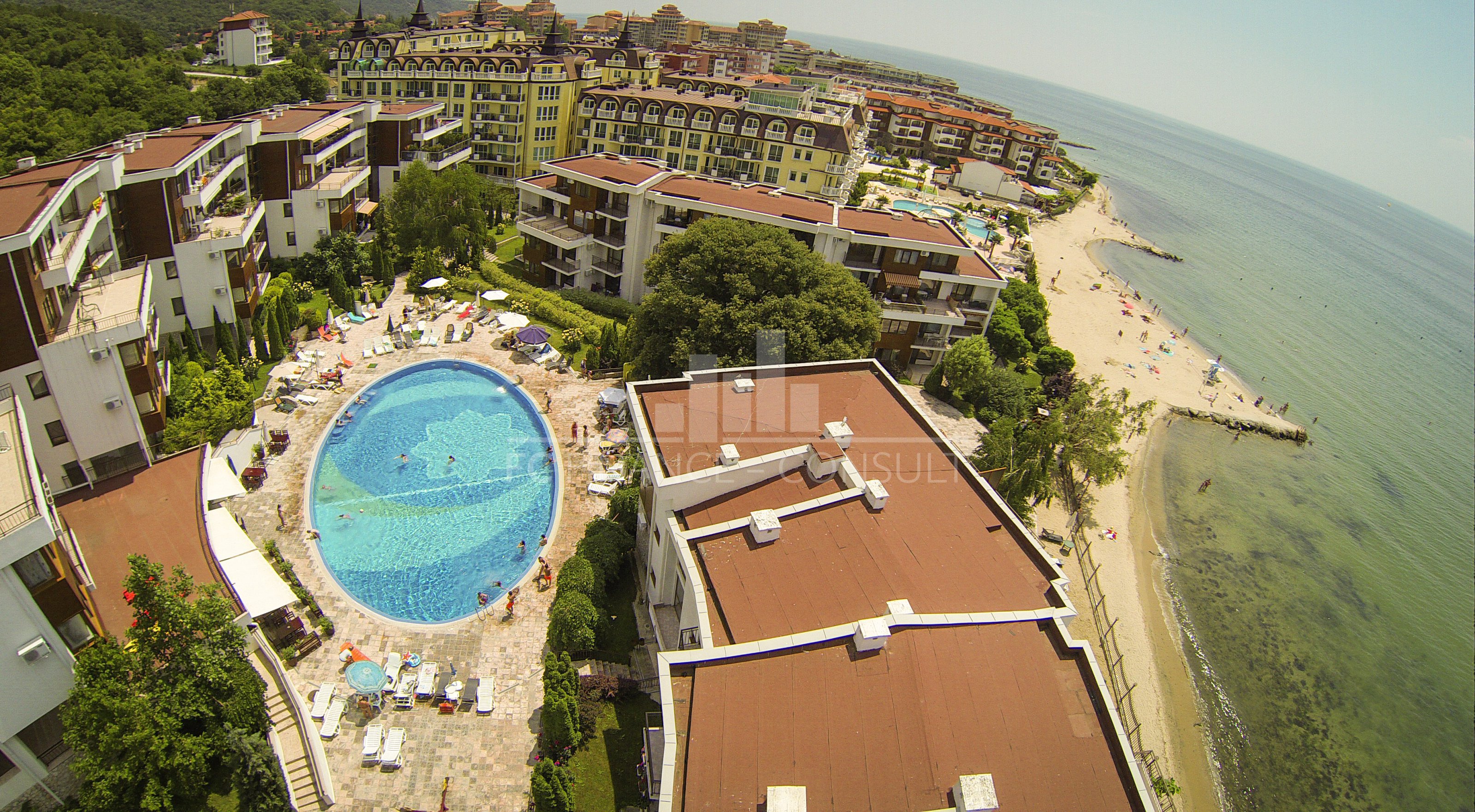 Тип на имота: 2 стаен • Квадратура: 73 кв.м с общите части • Локация и удобства: комплексът е разположен на брега на морето, в центъра на курорта • Разстояние до плажа: 10 метра • Възможност за разсрочено плащане до 7години: да • Първоначална вноска: 10% • Гледка: градина • Възможност за паркиране: в комплекса, на улицата • Разрешение за ползване: да • Годишна такса поддръжка: 14 евро/м2/година • Разпределение: коридор, дневна с кухненски кът, спалня, баня с тоалетна, балкон • Комплексът предлага следните удобства: рецепция, басейни, включително детски басейн, ресторанти с българска / европейска кухня, магазин за хранителни стоки и магазин за плажни аксесоари, фитнес уреди на открито или закрито, сауна, СПА център, детски клуб, стая за масаж, медицински център / медицинско обслужване в сезона, детски и спортни площадки, неохраняем и охраняем паркинг, обменно бюро, индивидуални екскурзии, коли под наем, тенис корт в съседство.