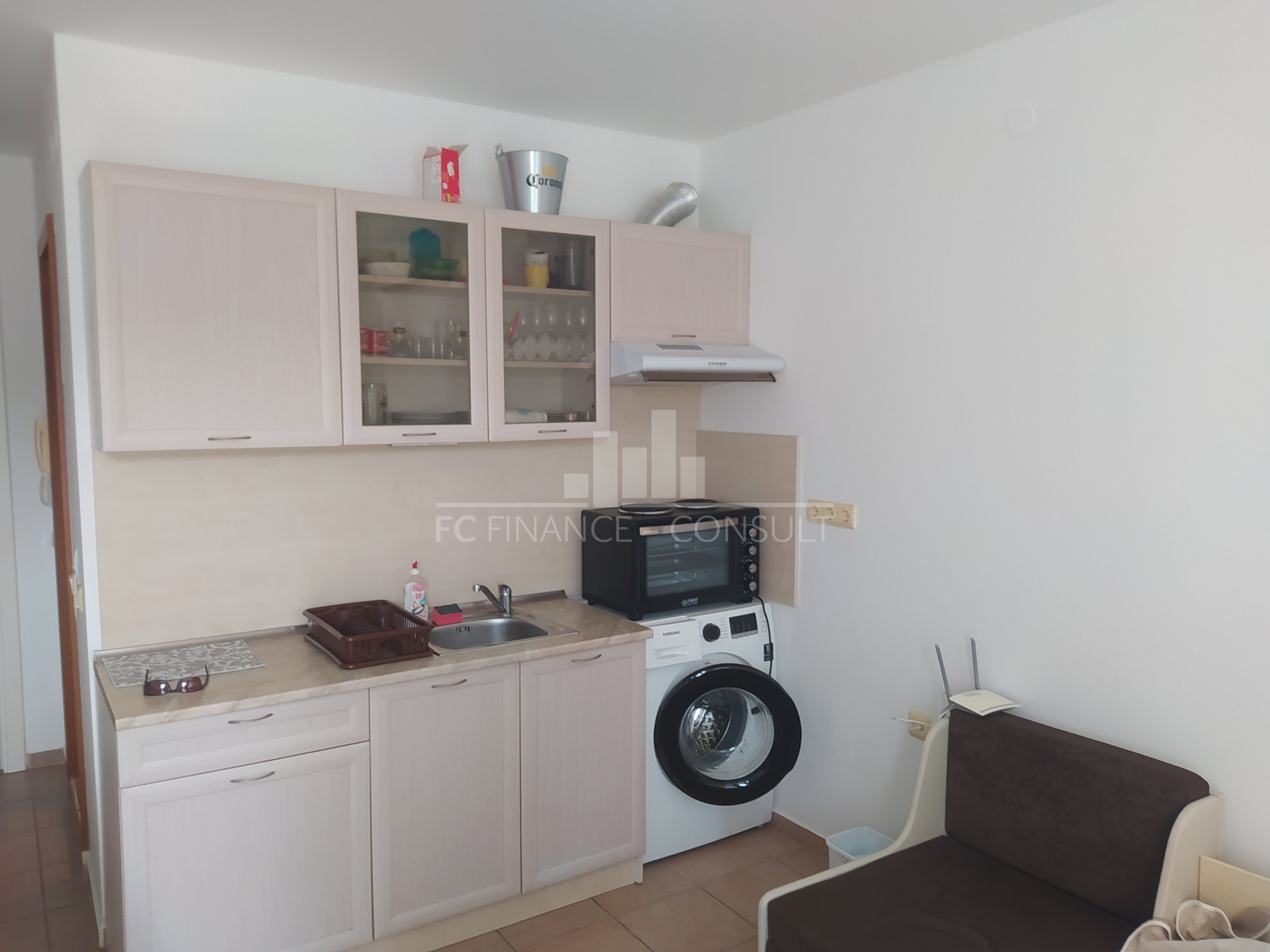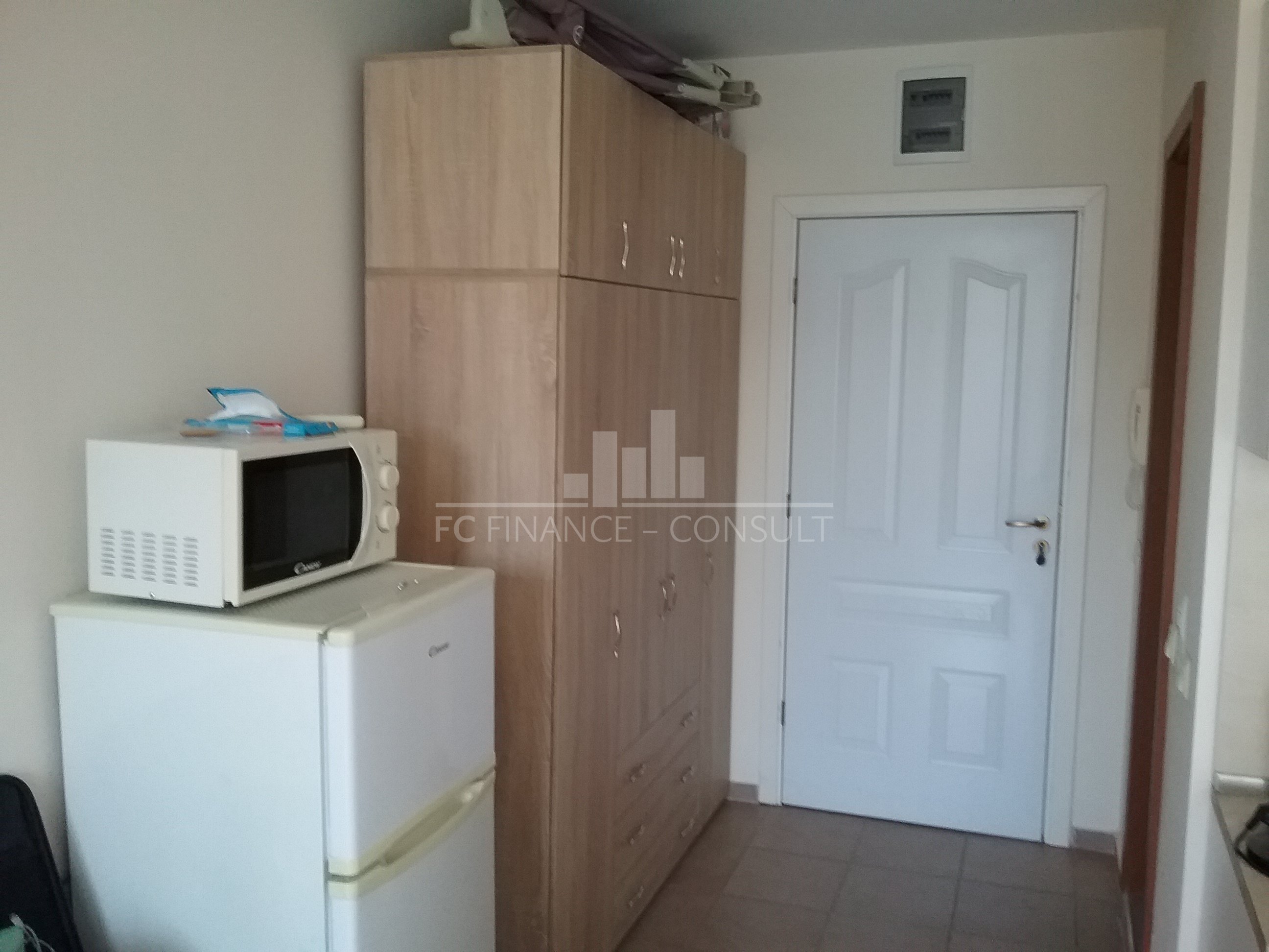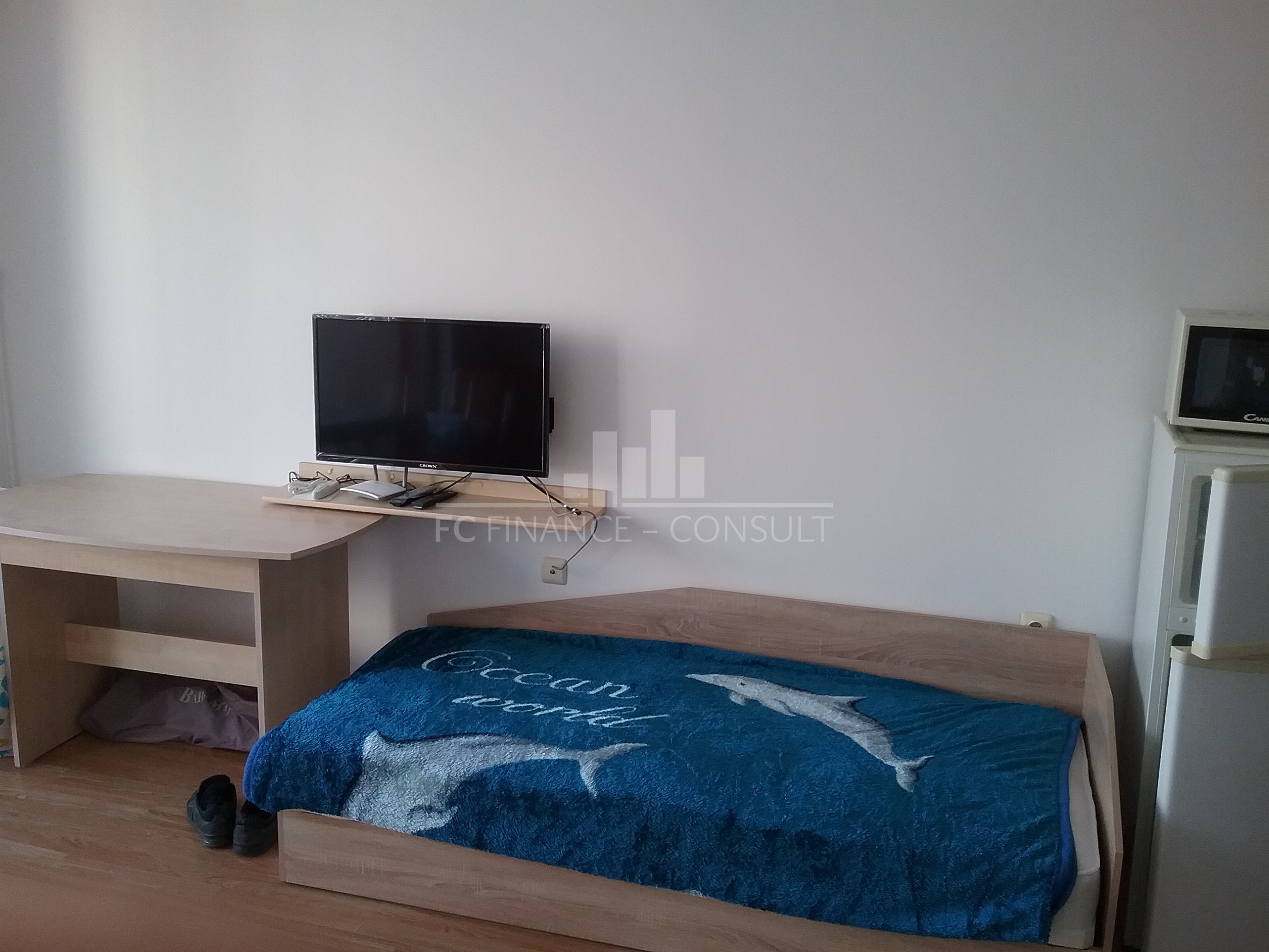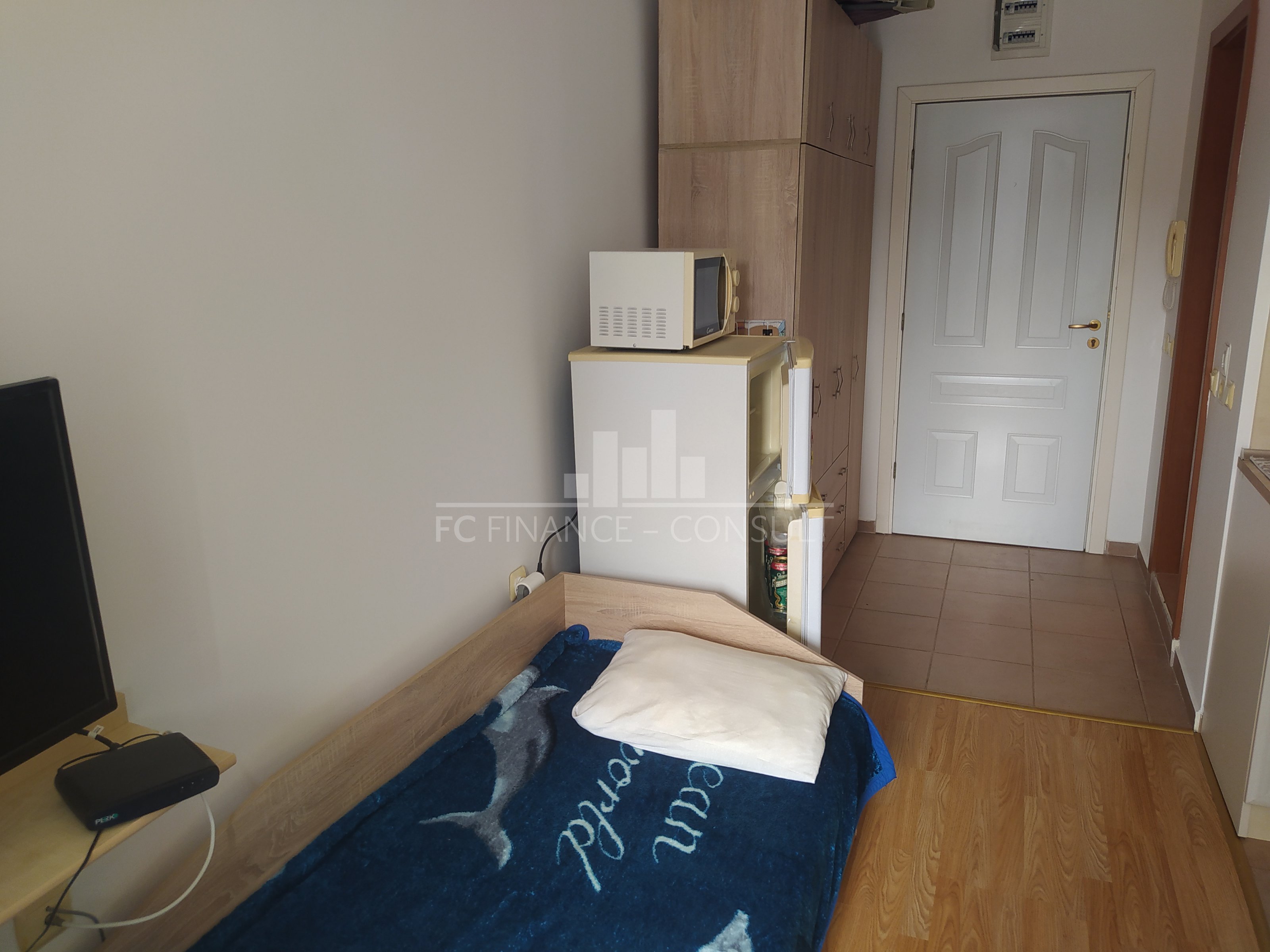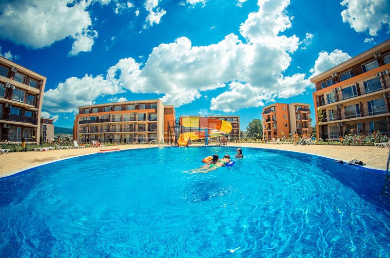 Обзаведен едностаен студио апартамент с обща площ 40м2 и изглед басейн в Слънчев бряг. • Тип на имота: студио • Разпределение: коридор, дневна с кухненски кът, баня с тоалетна, балкон • Квадратура: 40 кв.м • Локация и удобства: комплексът е разположен в близост до центъра на курорта на тихо място • Разстояние до плажа: 600 метра • Възможност за разсрочено плащане до 7години: не • Първоначална вноска: 100% • Гледка: градина, басейн • Възможност за паркиране: безплатно пред комплекса, на улицата • Разрешение за ползване: да • Годишна такса поддръжка: 13,50 евро/м2/година • Комплексът предлага следните удобства: рецепция, басейни, включително детски басейн, ресторанти с българска / европейска кухня, магазин за хранителни стоки и магазин за плажни аксесоари, фитнес уреди на открито или закрито, сауна, СПА център, детски клуб, стая за масаж, медицински център / медицинско обслужване в сезона, детски и спортни площадки, обменно бюро, индивидуални екскурзии, коли под наем, тенис корт, мини футбол, мини голф, билярд и тенис на маса, електрони игри за деца.
