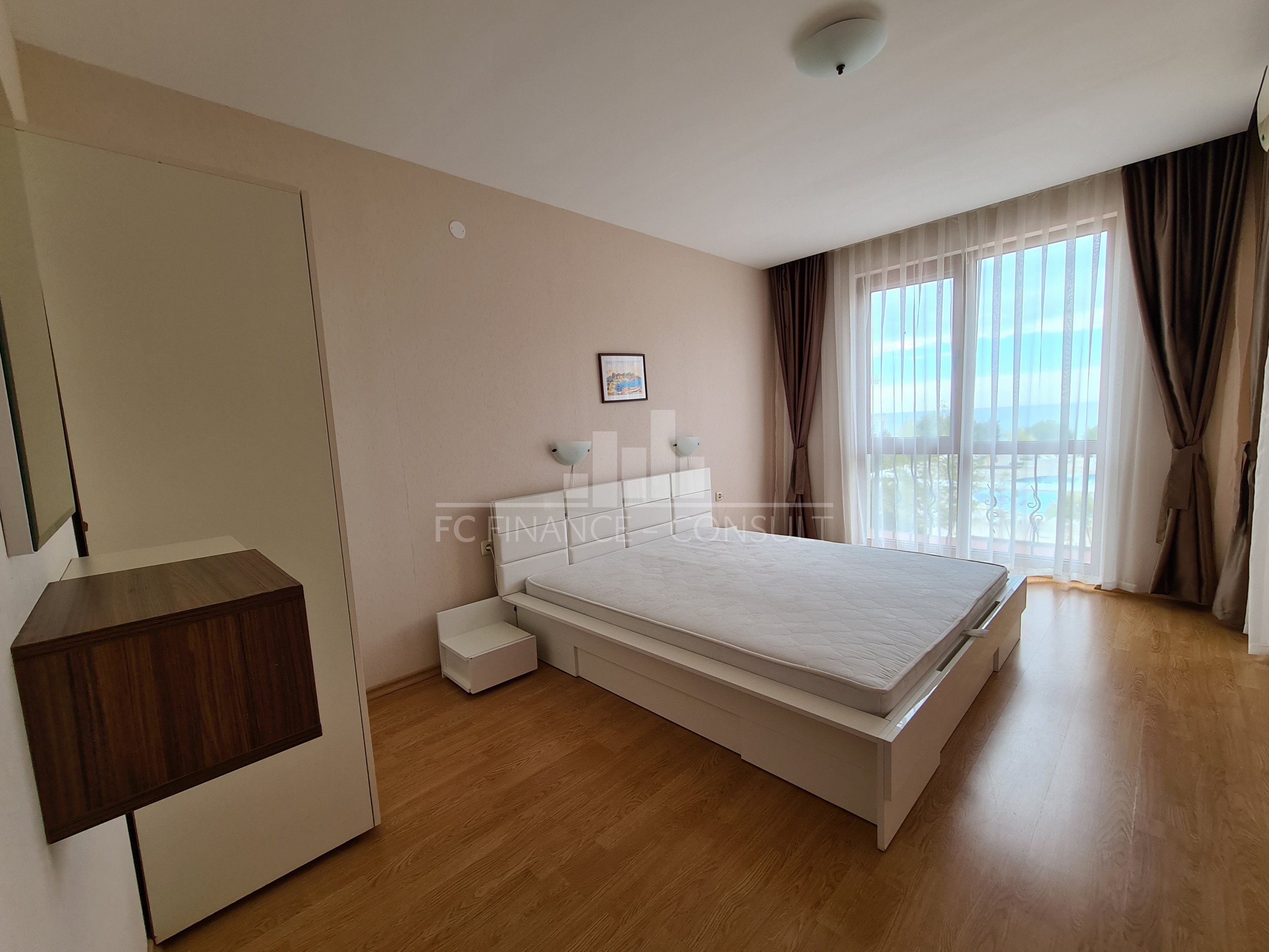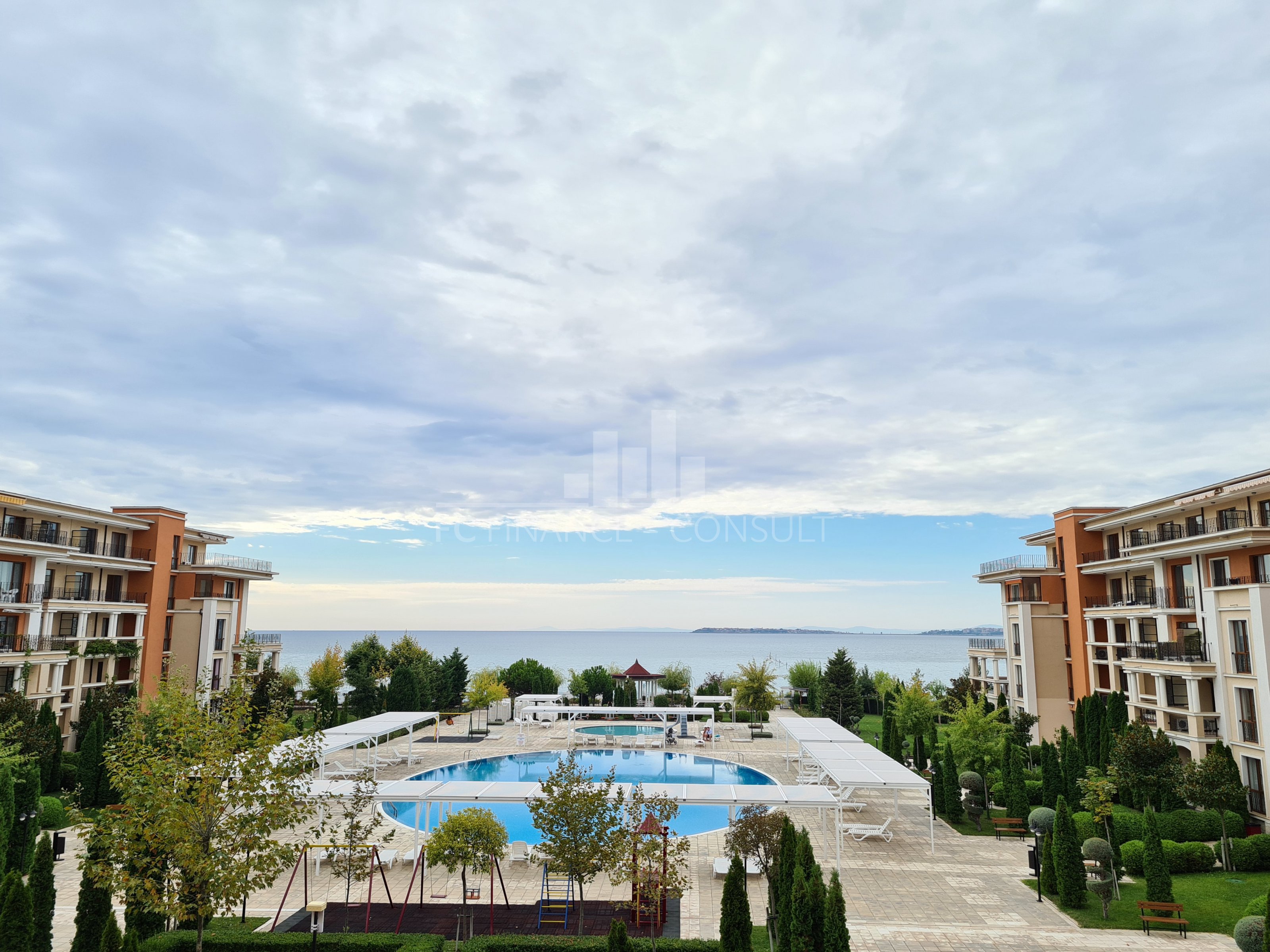 Тип на продавания имот: 4-стаен • Разпределение: коридор, дневна с кухненски кът, 3 спални, голям балкон • Квадратура: 143 кв.м заедно с о.ч. • Локация и удобства: комплексът е разположен на брега на морето • Възможност за разсрочено плащане до 7години: да • Първоначална вноска: 20% • Гледка: панорамна гледка градина, басейн, море • Възможност за паркиране: в комплекса, на улицата. Уникален, луксозен жилищен комплекс на първа линия. Разположен в северната част на Слънчев бряг, много близо до град Свети Влас. Повечето от апартаментите предлагат прекрасна гледка към морето. Благодарение на архитектурния проект, добре изпълнените довършителни работи с висококачествени строителни материали и най-важното - уникалното местоположение на морския бряг, този жилищен комплекс е идеален както за инвестиция, така и за втори дом и целогодишно живеене. Комплексът е завършен (с издаден Акт 16), предлага апартаменти с 1-2-3 спални и разполага със следните удобства: 30-метров плувен басейн, разположен в центъра на чудесно подреден просторен двор; детски басейн; фитнес; стая за масажи; уютен ресторант с лятна тераса; тенис корт / футболно игрище; детски площадки; зона за отдих; магазин за хранителни и плажни стоки; безплатен и неохраняем паркинг за собствениците на апартаменти; пране / химическо чистене; целогодишна рецепция; охрана; поддръжка. Собствениците заплащат годишна такса за поддръжка и управление в размер на 14 евро (с включен ДДС) на квадратен метър от общата площ на апартамента. Тази такса обхваща следното: поддръжка на територията на комплекса; поддръжка на общите части на имотите; поддръжка и ремонт на инфраструктурата и комуникациите; поддръжка на басейните; поддръжка на зелената площ на комплекса; целогодишна охрана; ползване на басейни; електрическо осветление на общата територия; електрическо осветление на общите части на сградата. Чудесна възможност за покупка на апартамент на брега на морето!